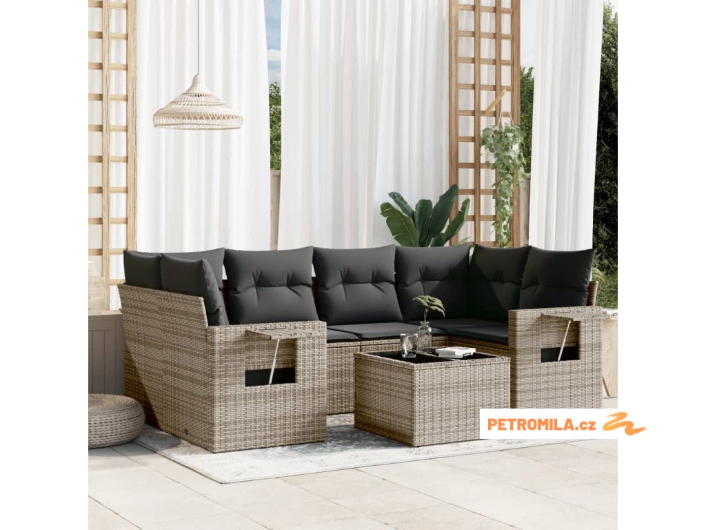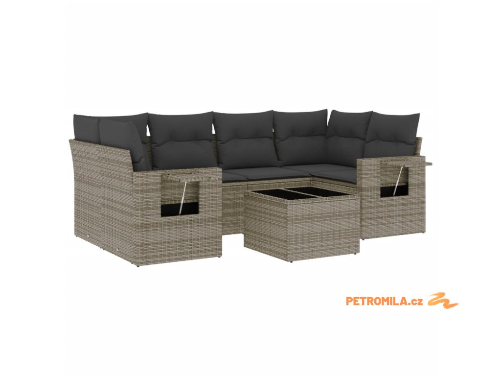 7dílná zahradní sedací souprava s poduškami šedá polyratan