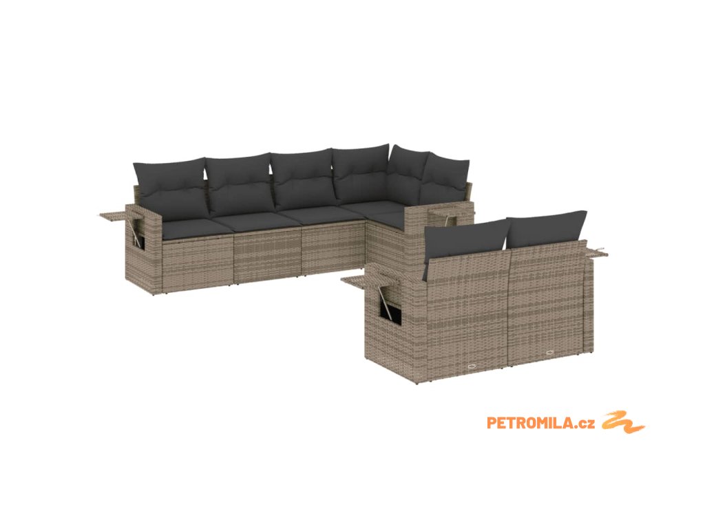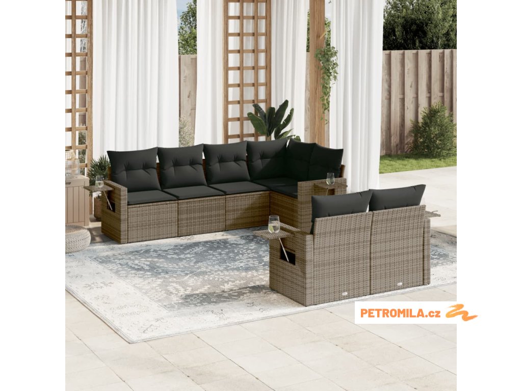7dílná zahradní sedací souprava s poduškami šedá polyratan