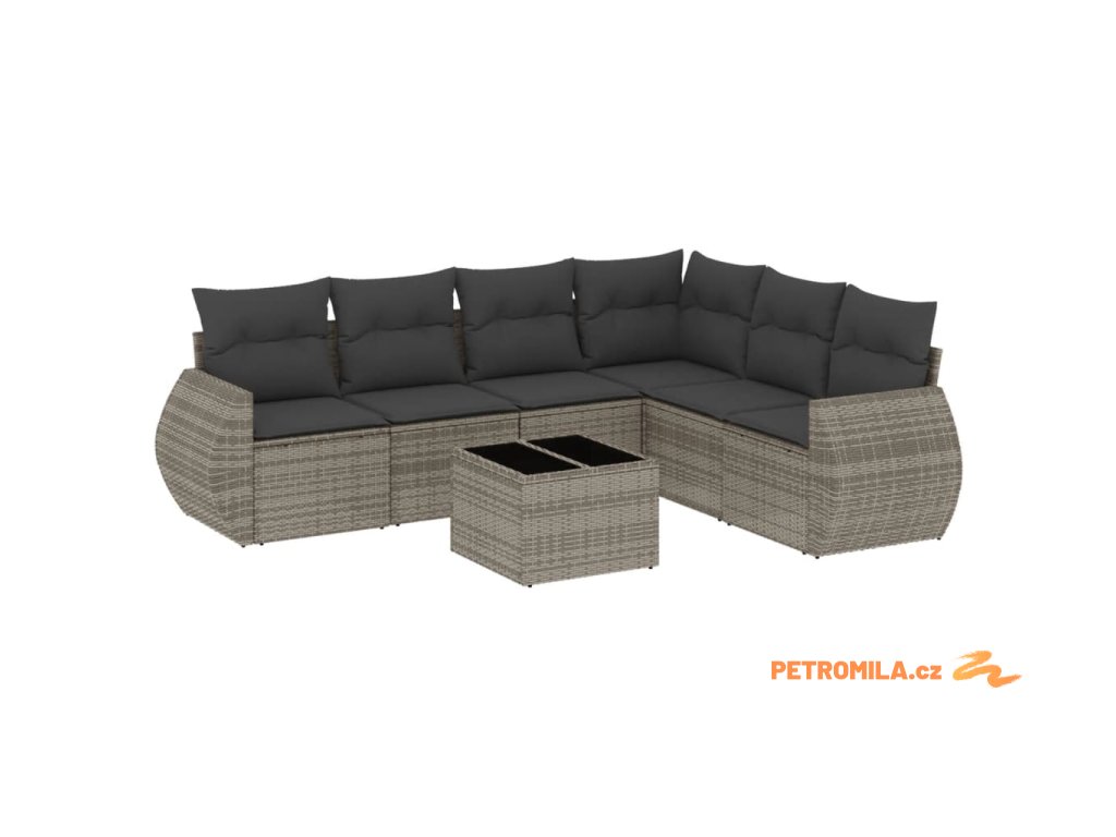 7dílná zahradní sedací souprava s poduškami šedá polyratan