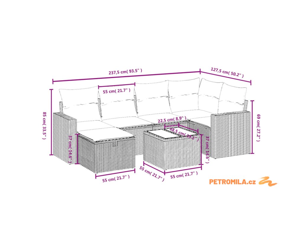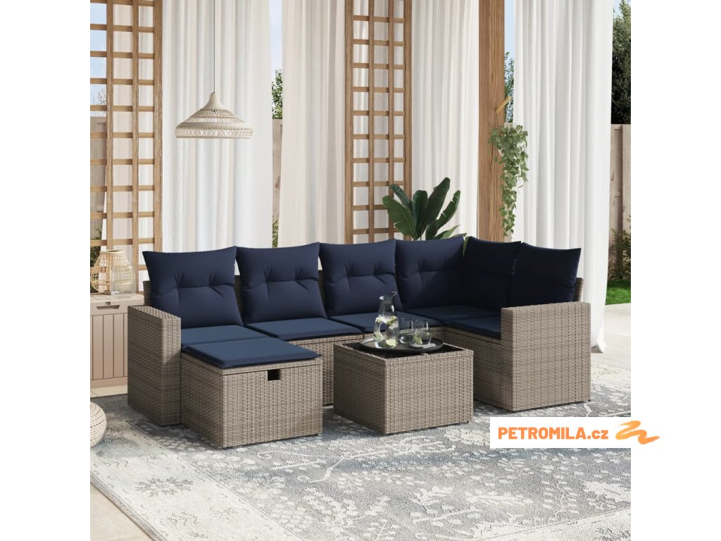 7dílná zahradní sedací souprava s poduškami šedá polyratan