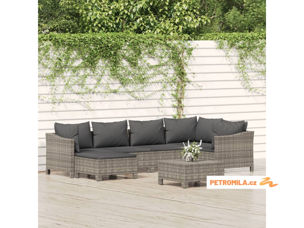 7dílná zahradní sedací souprava s poduškami šedá polyratan