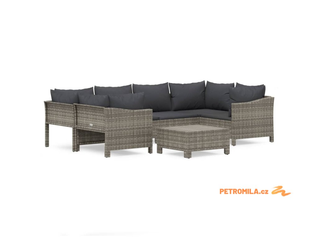 7dílná zahradní sedací souprava s poduškami šedá polyratan