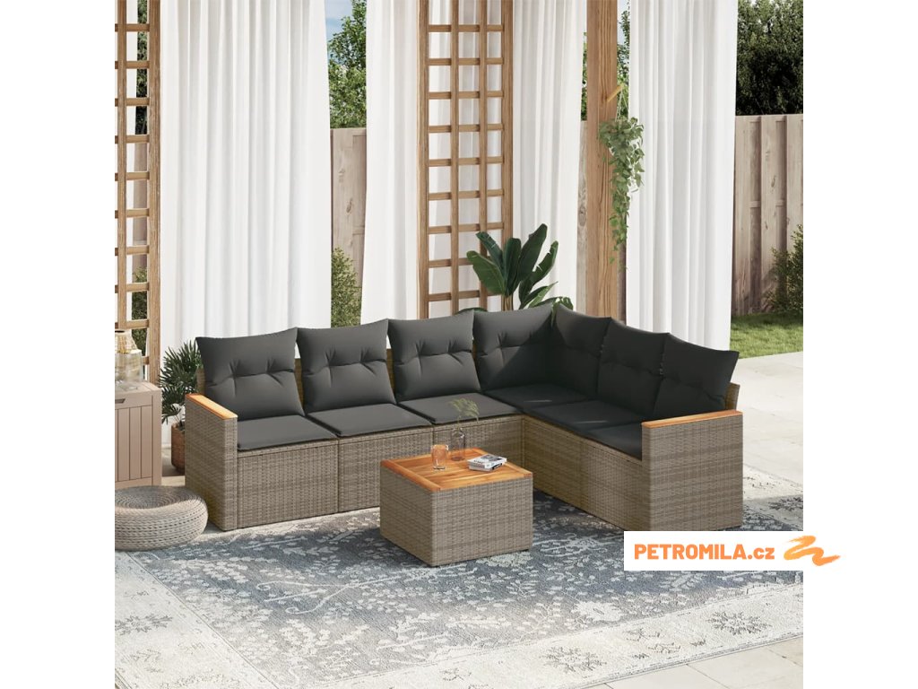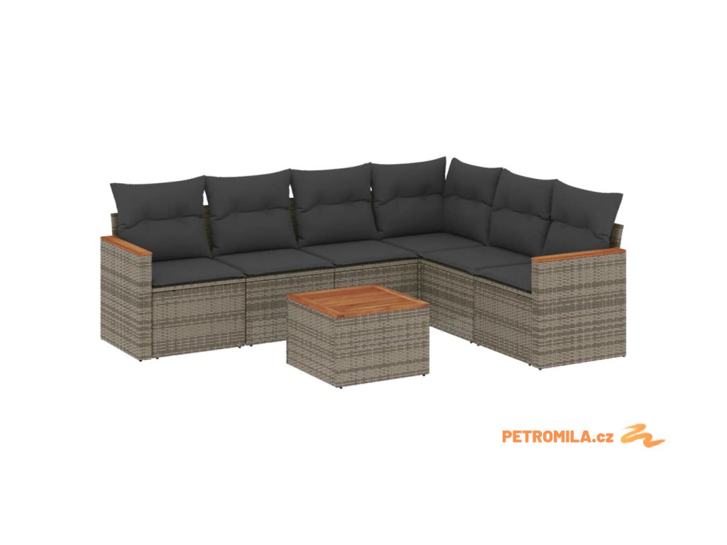 7dílná zahradní sedací souprava s poduškami šedá polyratan