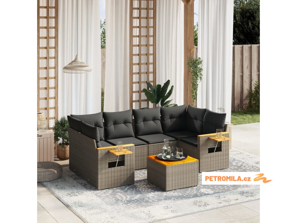 7dílná zahradní sedací souprava s poduškami šedá polyratan