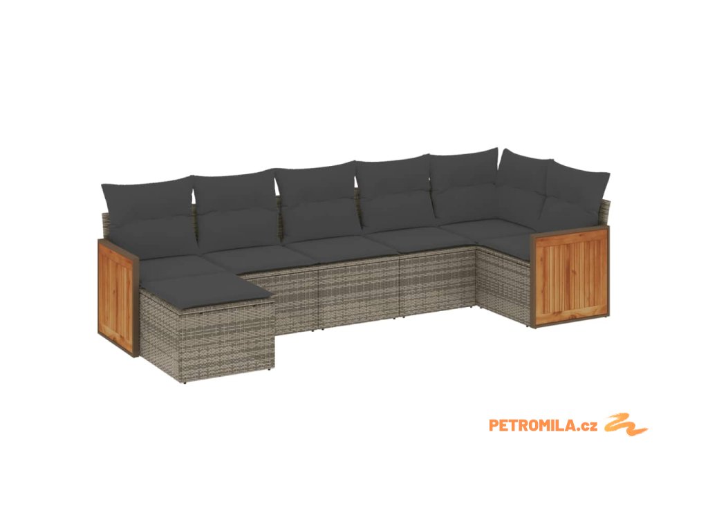 7dílná zahradní sedací souprava s poduškami šedá polyratan