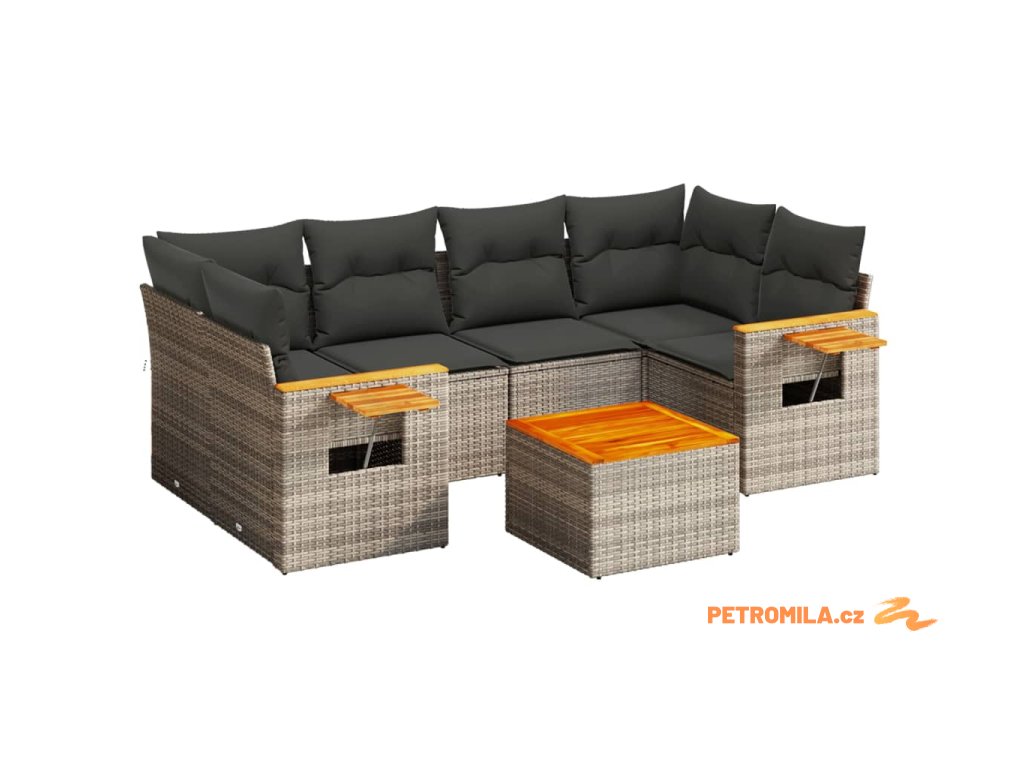 7dílná zahradní sedací souprava s poduškami šedá polyratan