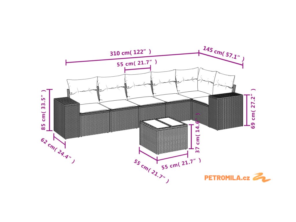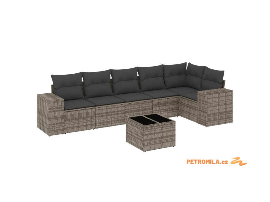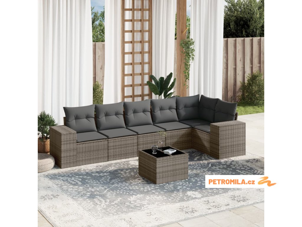 7dílná zahradní sedací souprava s poduškami šedá polyratan