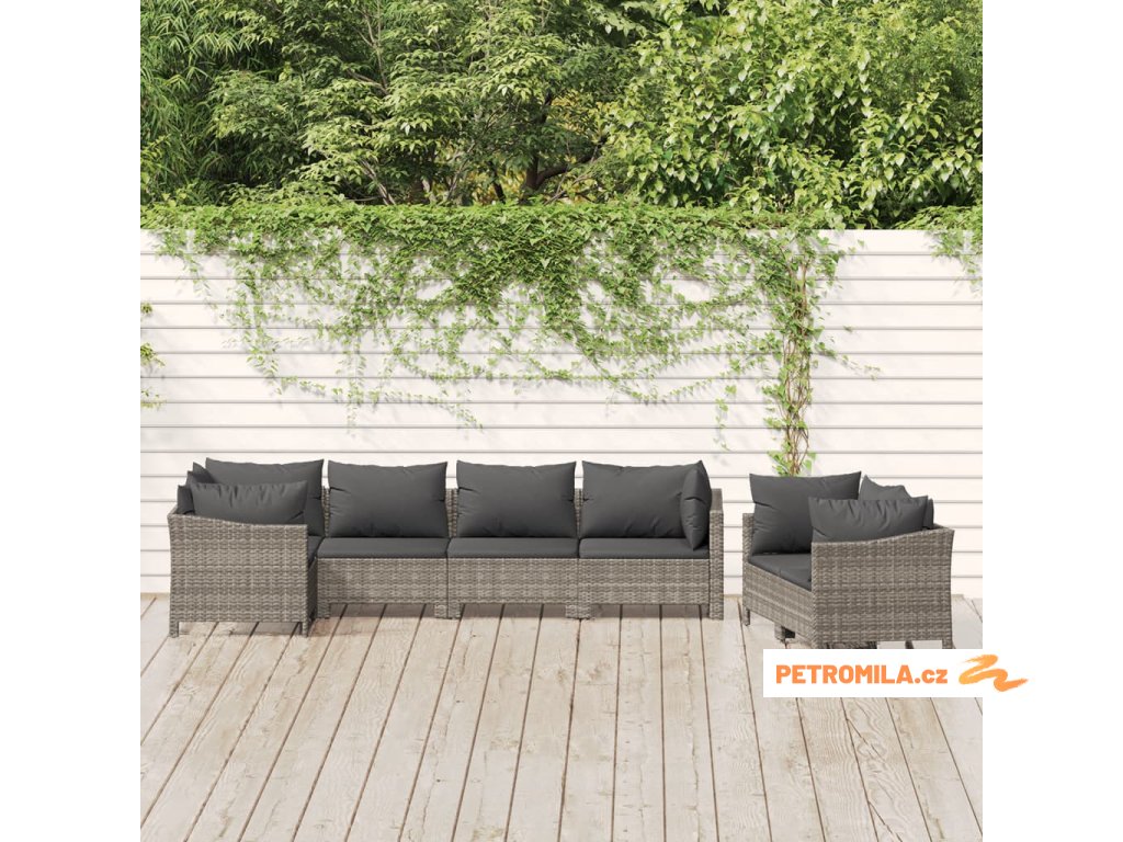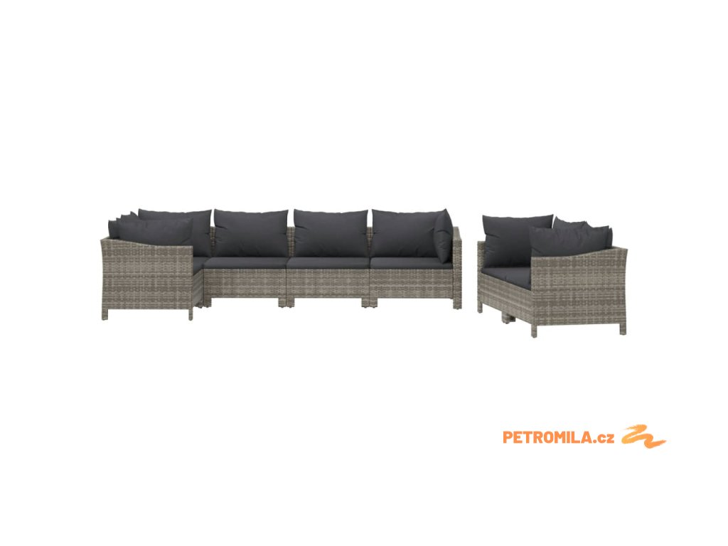 7dílná zahradní sedací souprava s poduškami šedá polyratan