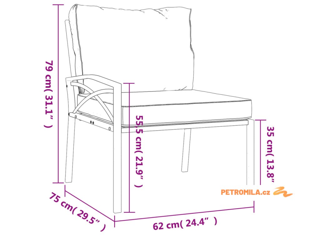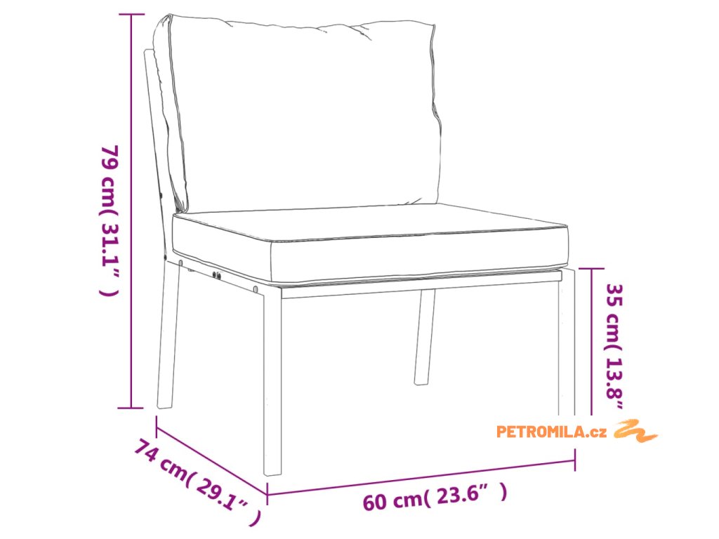 - Výška sedáku od země (bez podušky): 35 cm
