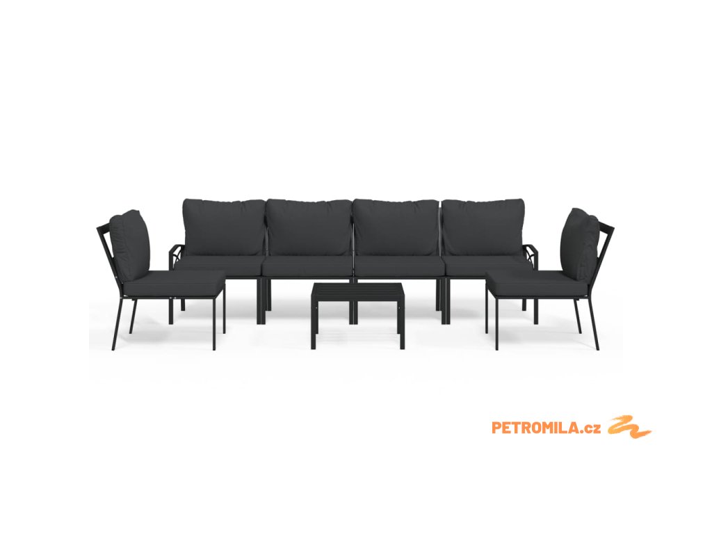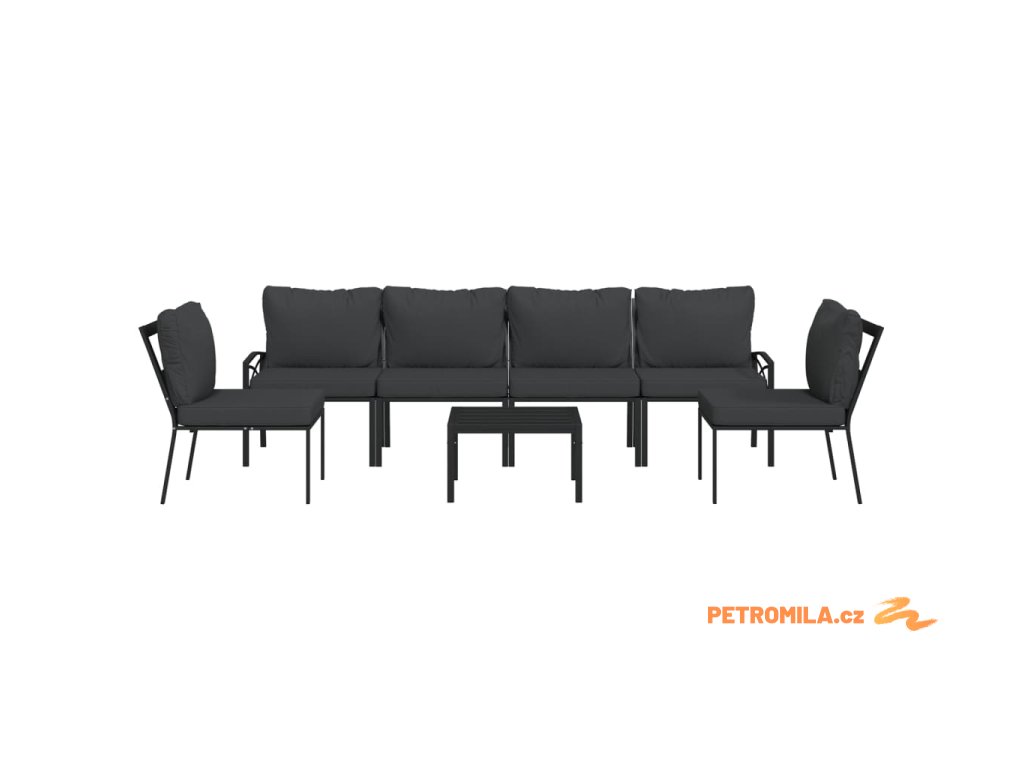 7dílná zahradní sedací souprava s šedými poduškami ocel