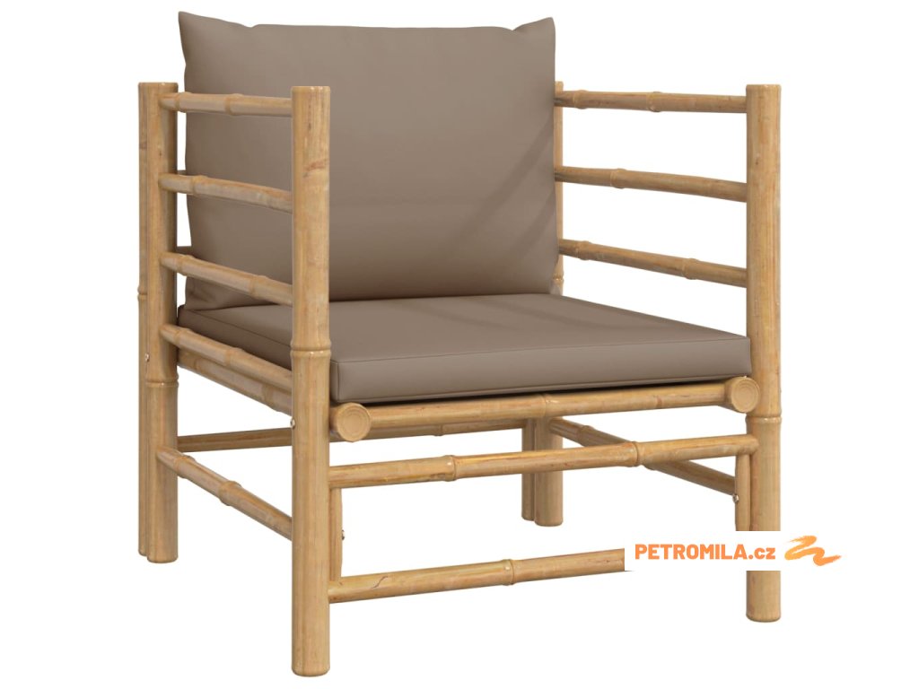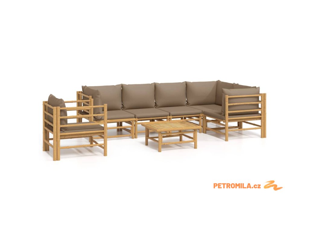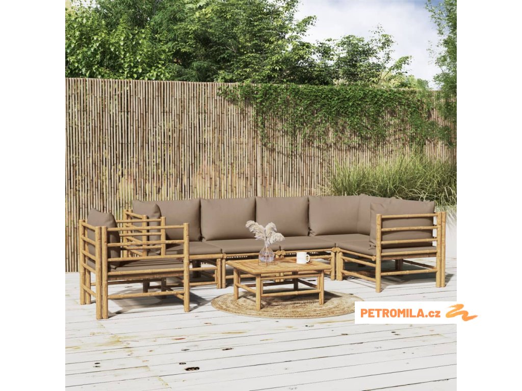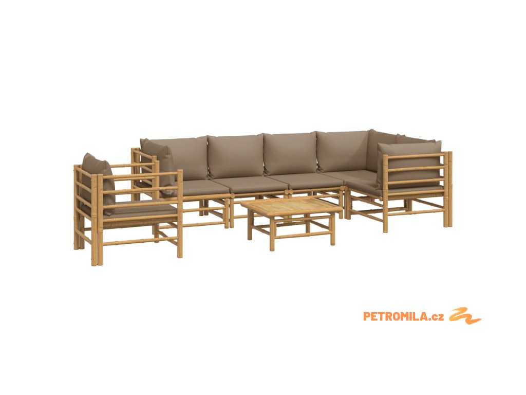7dílná zahradní sedací souprava s taupe poduškami bambus