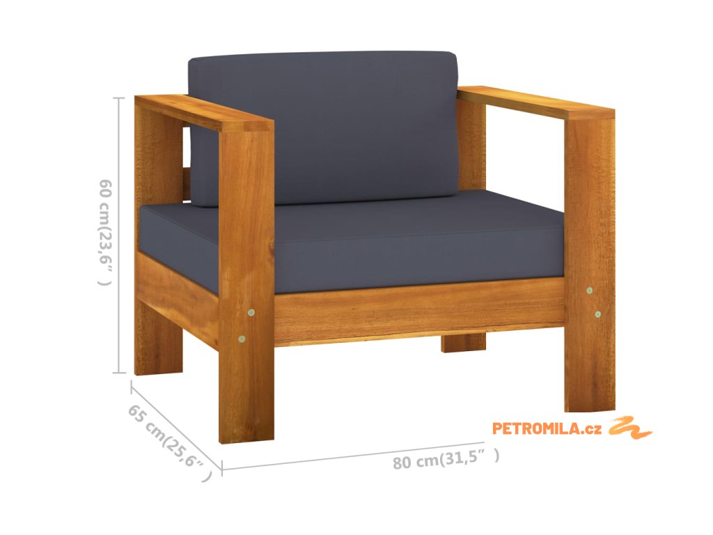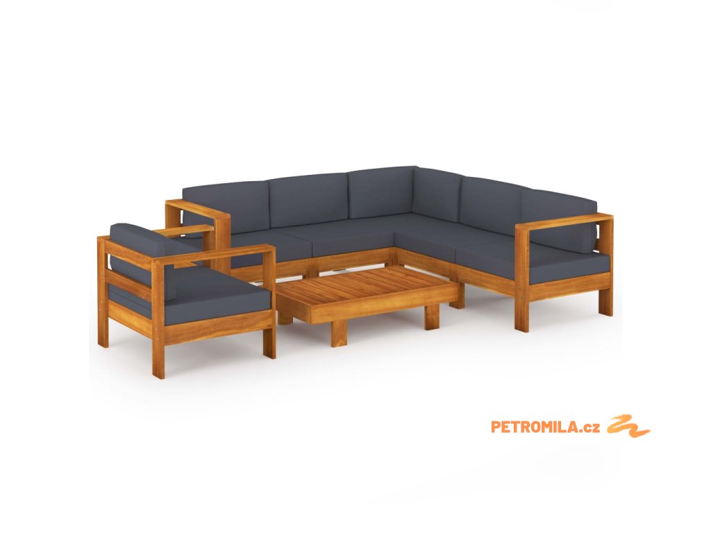 7dílná zahradní sedací souprava s tmavě šedými poduškami akácie
