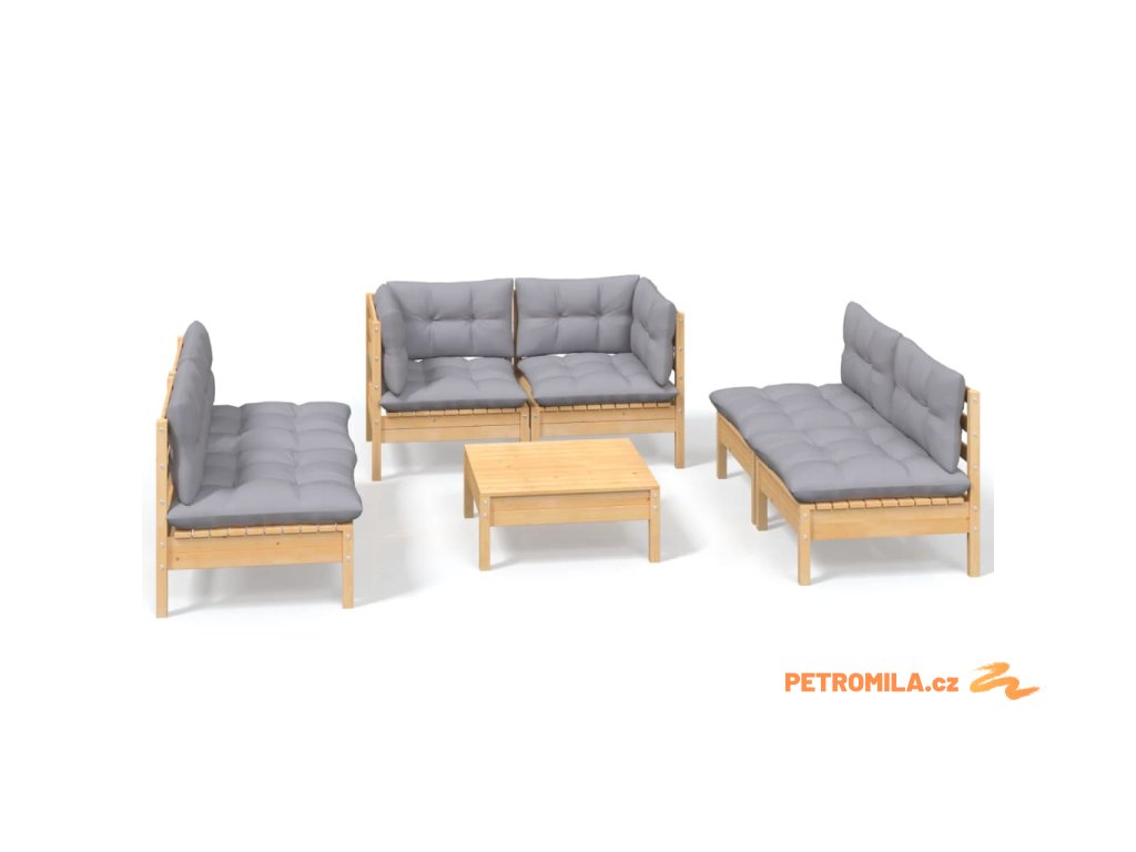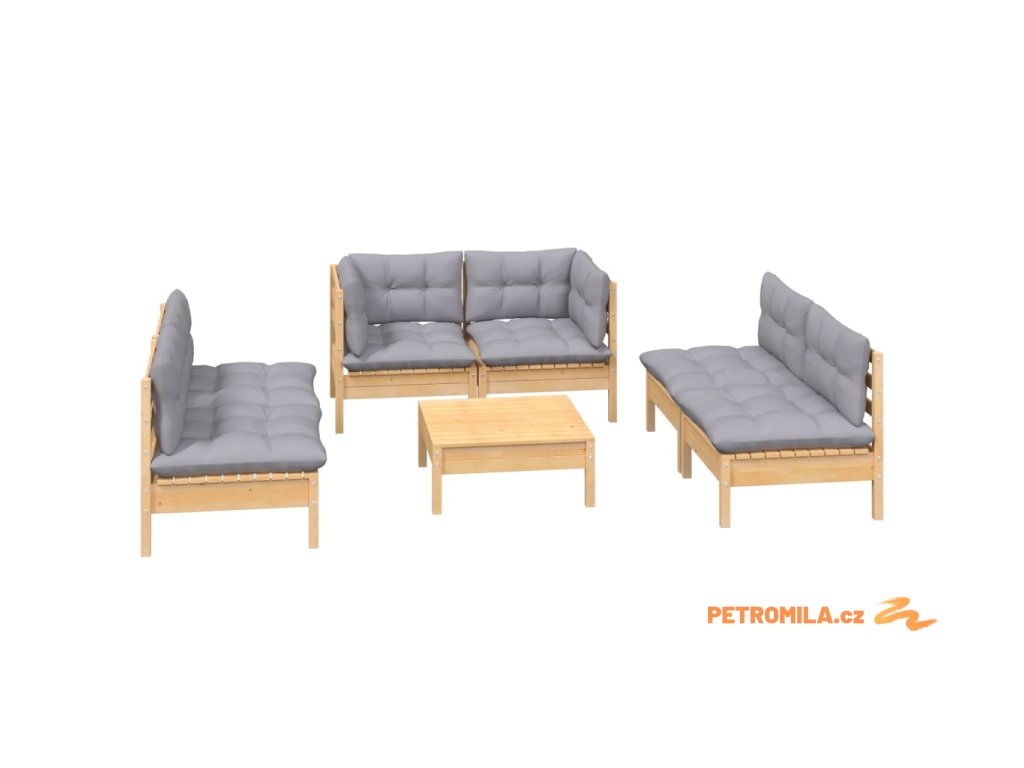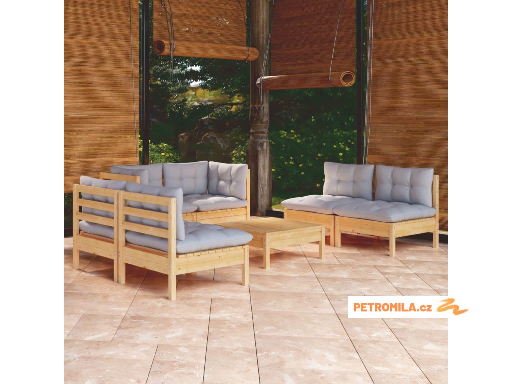 7dílná zahradní sedací souprava šedé podušky masivní borovice