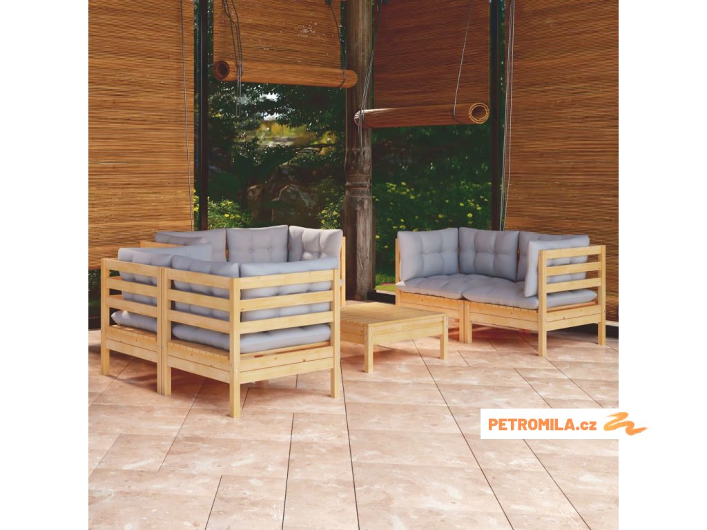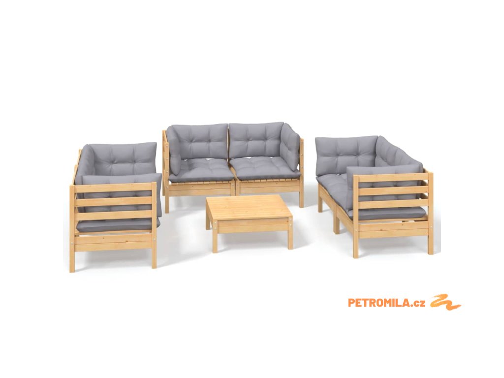 7dílná zahradní sedací souprava šedé podušky masivní borovice