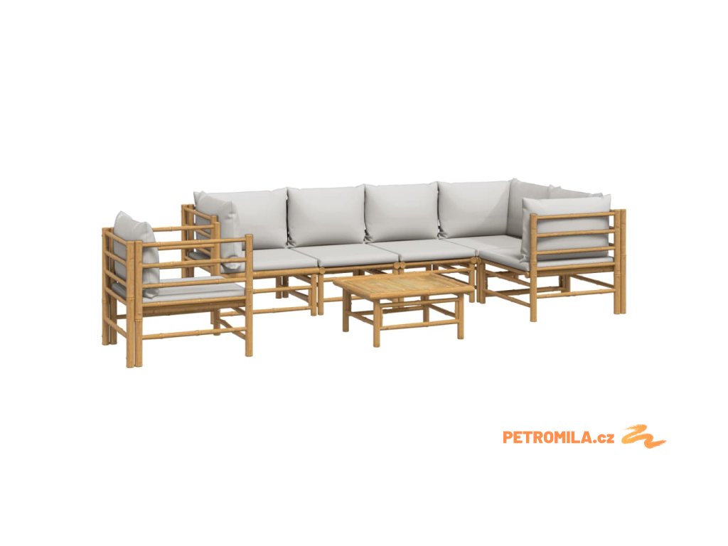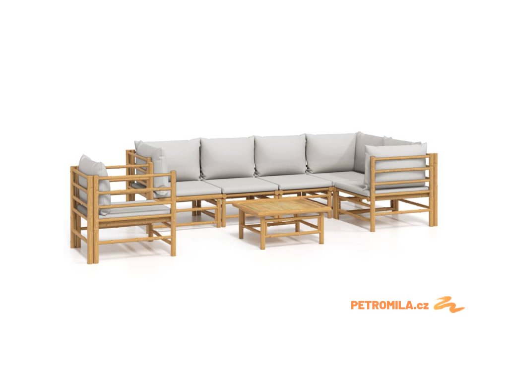 7dílná zahradní sedací souprava světle šedé podušky bambus