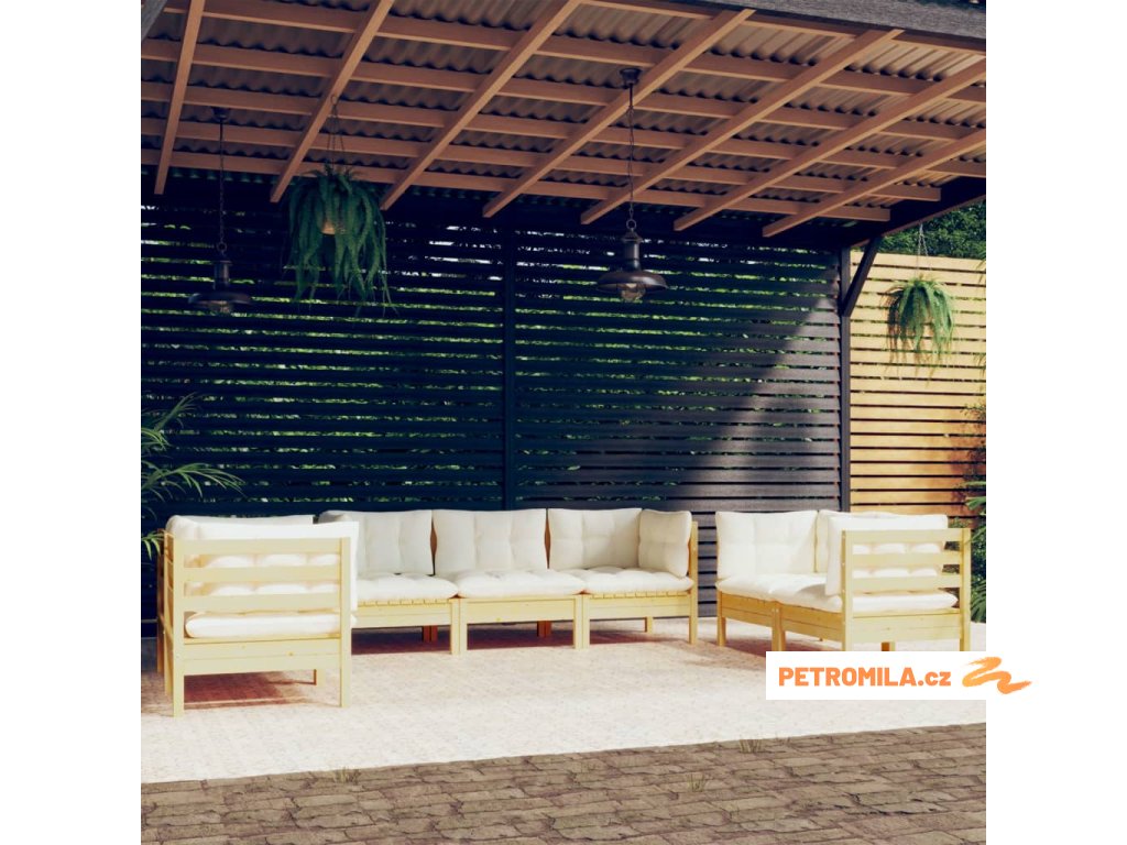 7dílná zahradní souprava krémové podušky masivní borovice