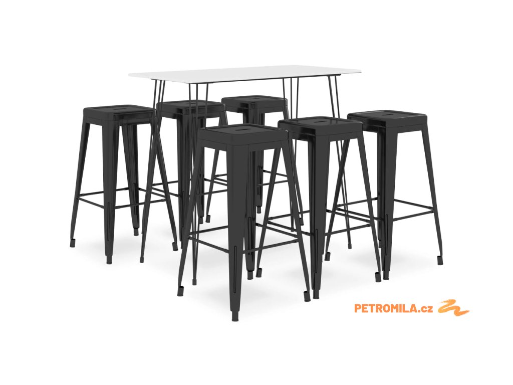 Stolní deska je zhotovená z MDF, takže se snadno čistí. Práškově lakovaný kovový rám přispívá k celkové stabilitě a odolnosti barového stolu. Stoličky jsou vyrobené z natíraného kovu, jsou proto velice pevné a dlouho vám vydrží. Zesílená příčka pod sedákem a opěrka nohou zajišťují lepší rovnováhu. Barové židličky lze navíc stohovat, aby se vám jednodušeji skladovaly, jedná se tedy o dokonalé řešení pro omezené prostory.