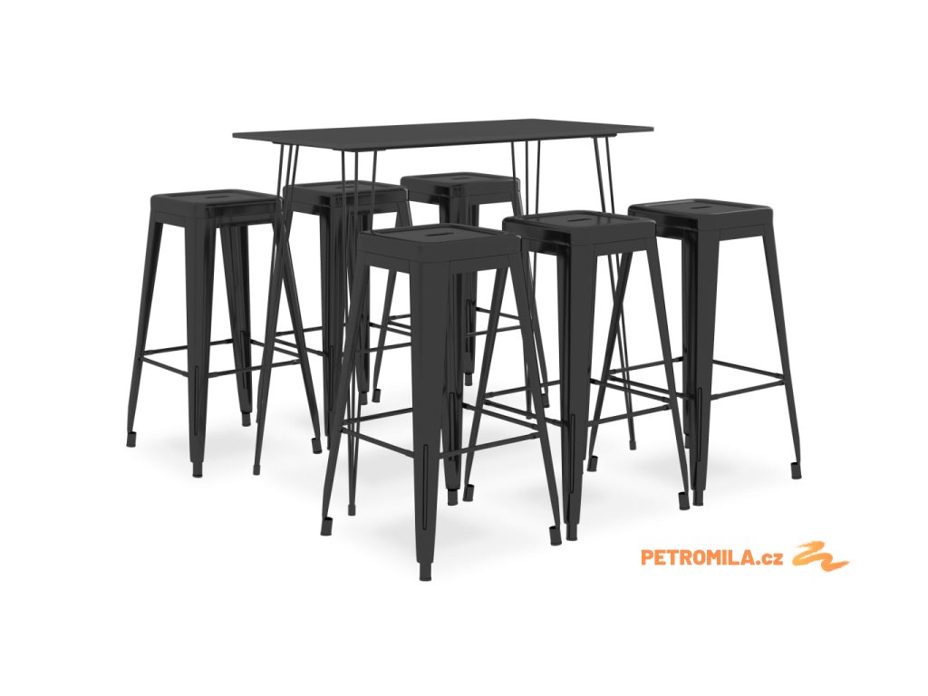 Stolní deska je zhotovená z MDF, takže se snadno čistí. Práškově lakovaný kovový rám přispívá k celkové stabilitě a odolnosti barového stolu. Stoličky jsou vyrobené z natíraného kovu, jsou proto velice pevné a dlouho vám vydrží. Zesílená příčka pod sedákem a opěrka nohou zajišťují lepší rovnováhu. Barové židličky lze navíc stohovat, aby se vám jednodušeji skladovaly, jedná se tedy o dokonalé řešení pro omezené prostory.