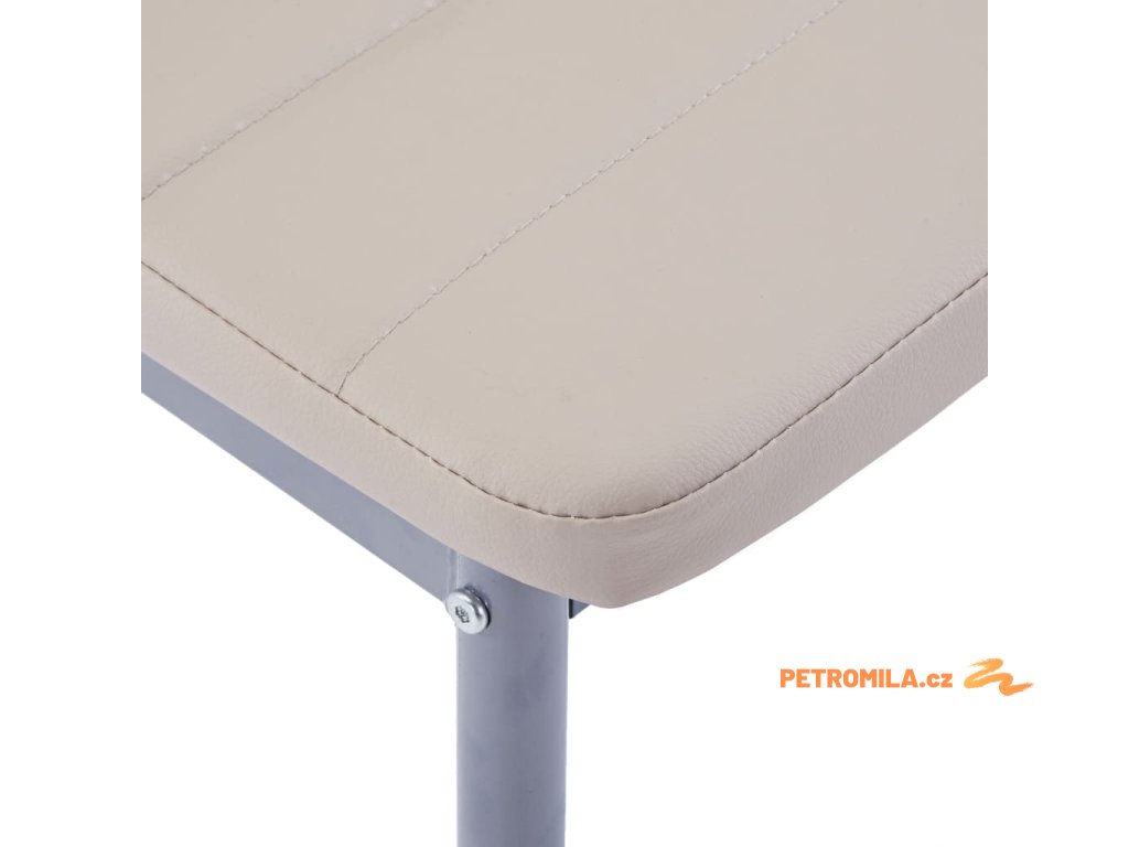 Stolní deska je vyrobena z velmi pevného tvrzeného skla, které se snadno čistí. Každá židle je čalouněná kvalitní umělou kůží. Pružné polstrované sedáky jsou velmi pohodlné.