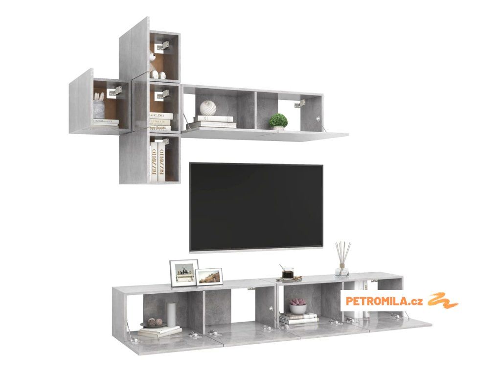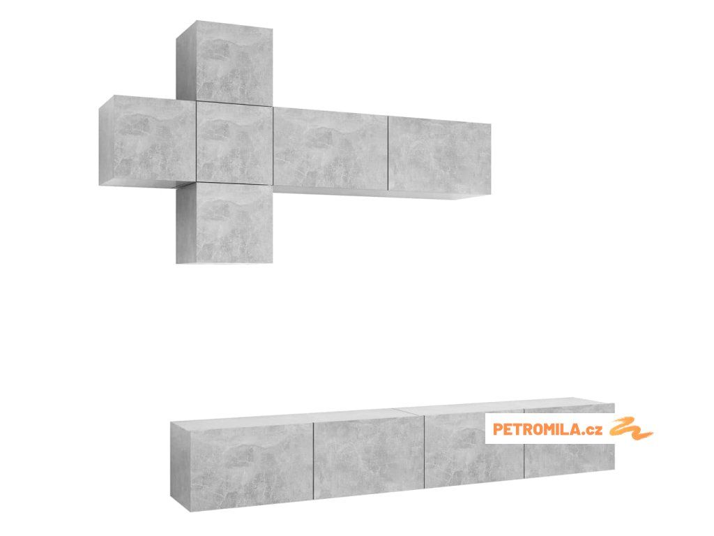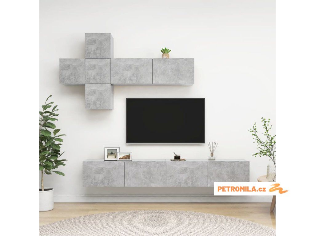 7dílný set TV skříněk betonově šedý dřevotříska