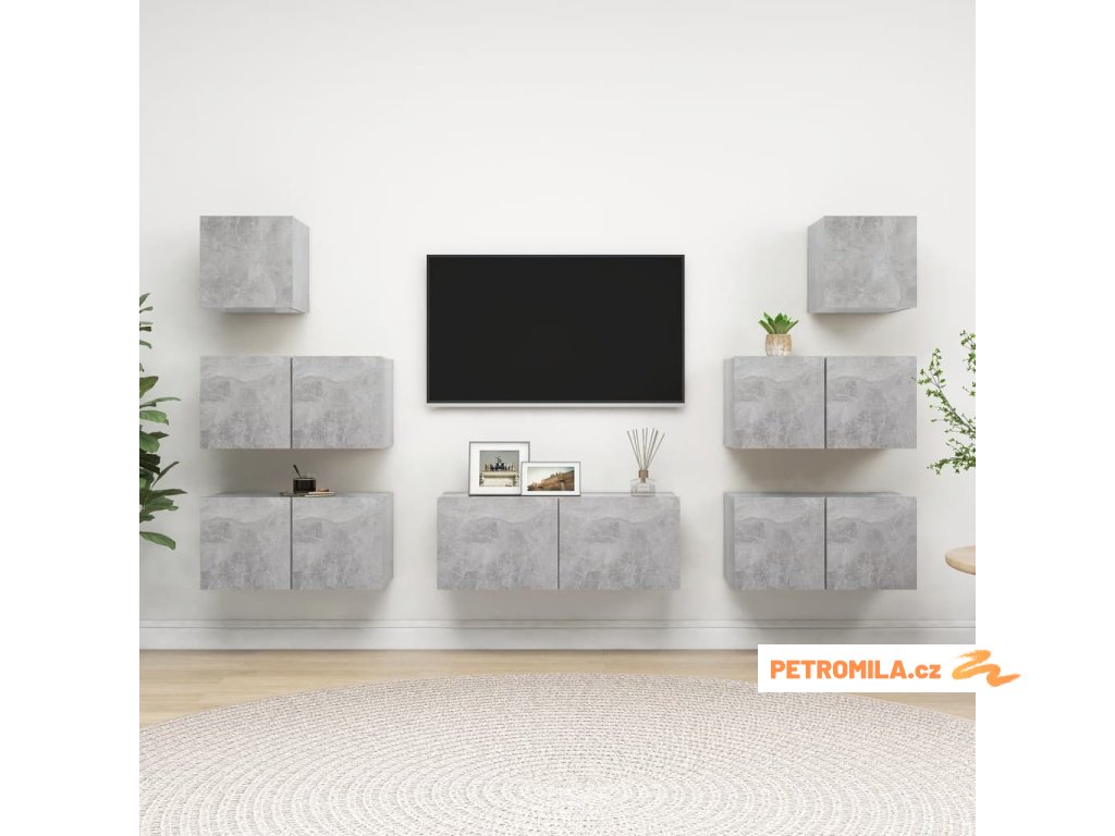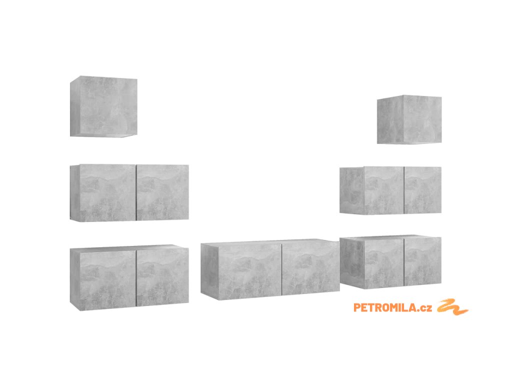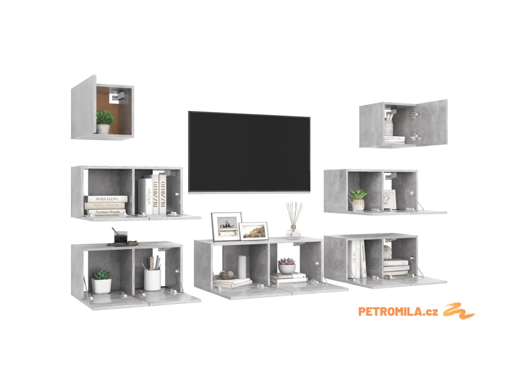 7dílný set TV skříněk betonově šedý kompozitní dřevo