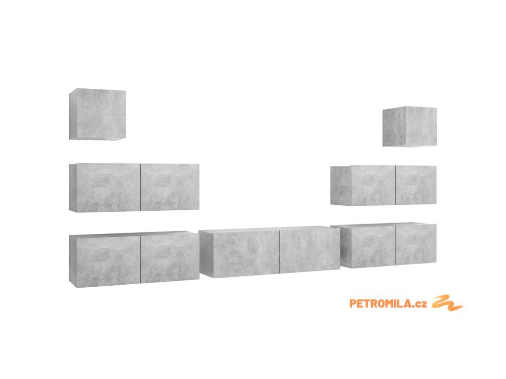 7dílný set TV skříněk betonově šedý kompozitní dřevo