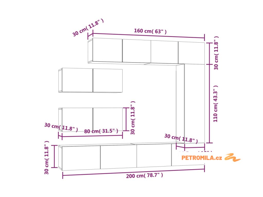 - 4x TV skříňka: 80 x 30 x 30 cm (D x Š x V)