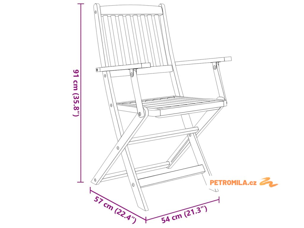 Zahradní jídelní set je vyrobený z masivního akáciového dřeva. Jedná se o tvrdé dřevo z tropů, které je odolné vůči povětrnostním vlivům a má dlouhou životnost. Olejem napuštěný povrch nábytku snadno vyčistíte navlhčeným hadříkem. Jak zahradní židle, tak stůl je možné složit, aby zbytečně nepřekážely, když je zrovna nepoužíváte.