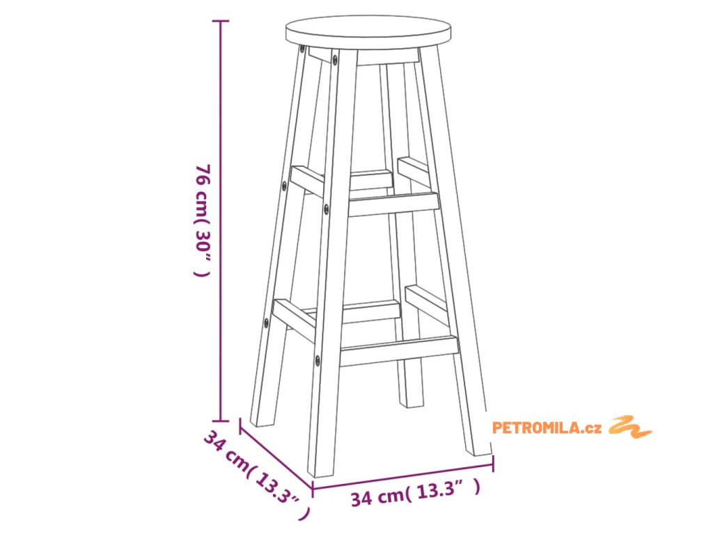 - Rozměry židle (každá): 34 x 34 x 76 cm (Š x H x V)
