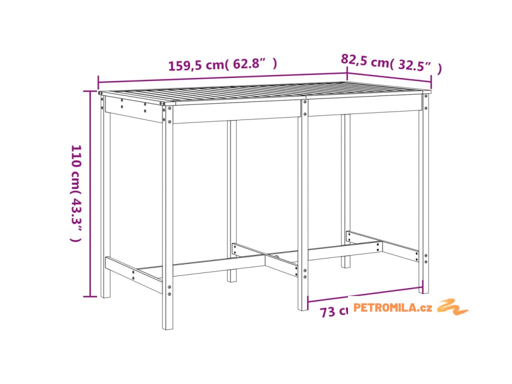 - Rozměry zahradního stolku: 159,5 x 82,5 x 110 cm (D x Š x V)