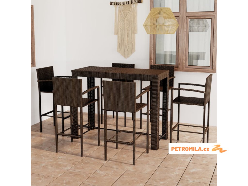 Základem barového stolu je rám z práškově lakované oceli, který mu dodává na stabilitě a odolnosti. Stolní deska vám skvěle poslouží k odkládání nápojů a občerstvení nebo k vystavení dekorativních předmětů. Stoličky mají pevnou konstrukci z oceli, která je opletená voděodolným PE ratanem, jsou tedy stabilní a snadno se přesouvají. Opěrka na nohy vám navíc při sezení zajistí další pohodlí.