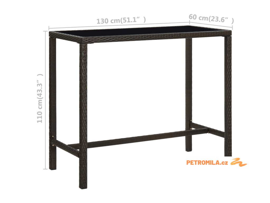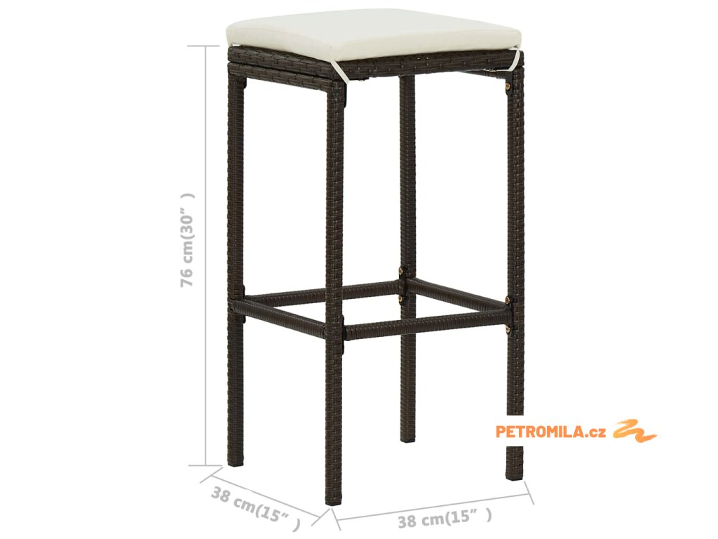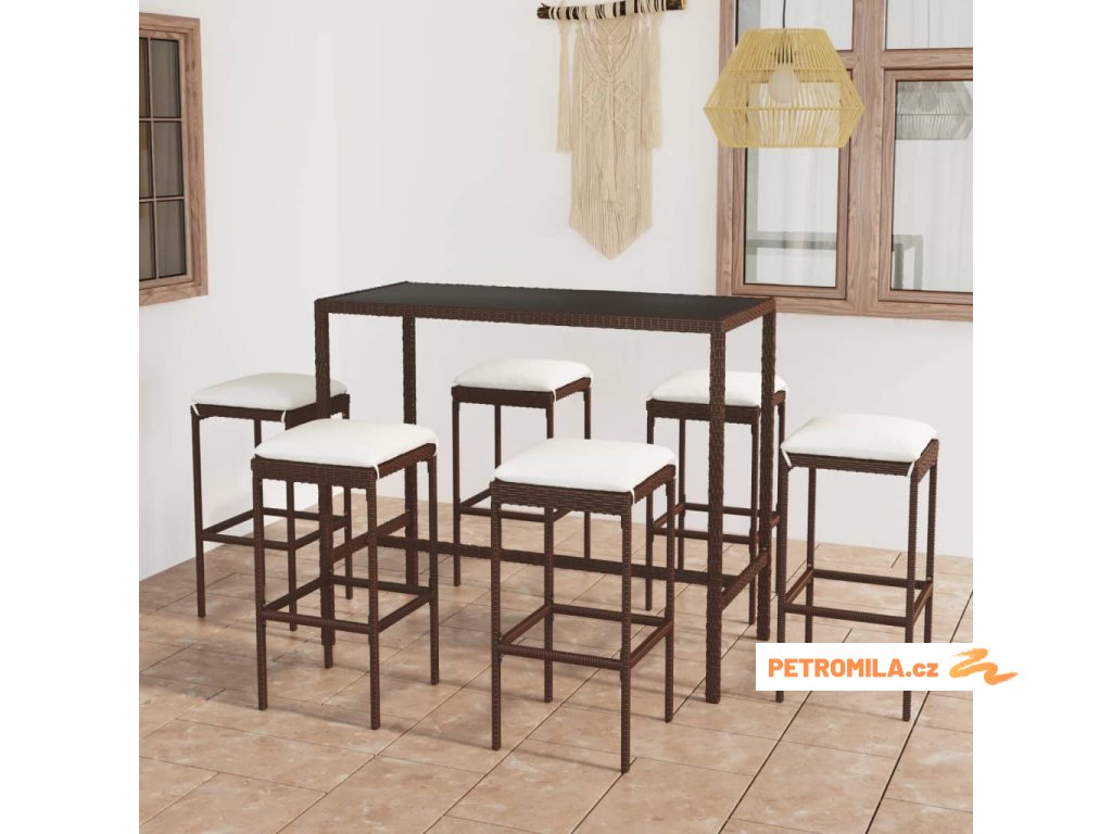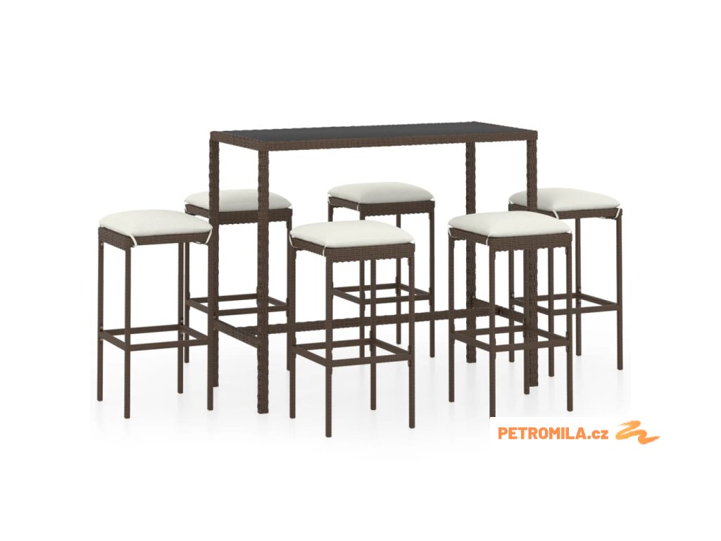 7dílný zahradní barový set s poduškami polyratan hnědý