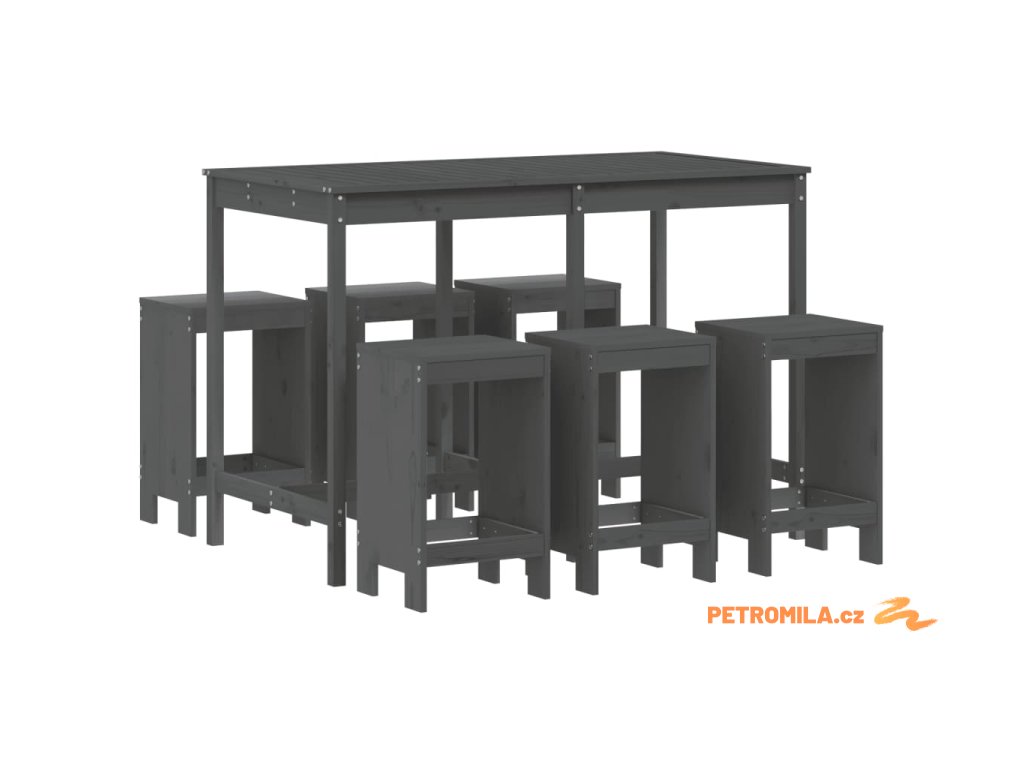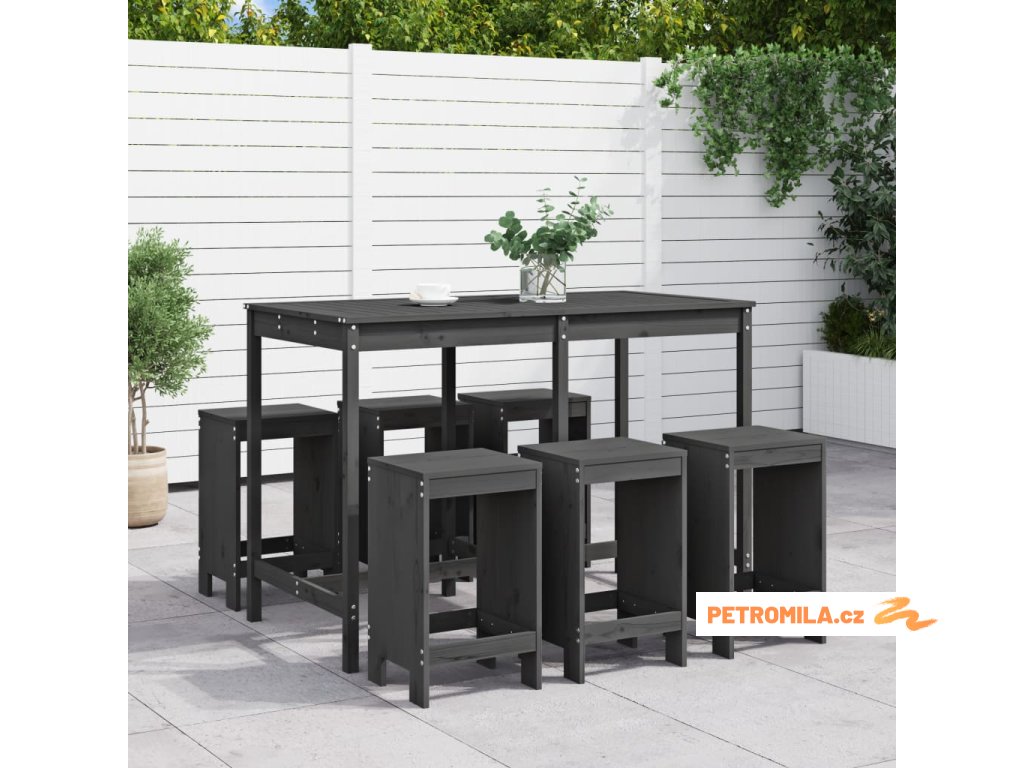 7dílný zahradní barový set šedý masivní borové dřevo