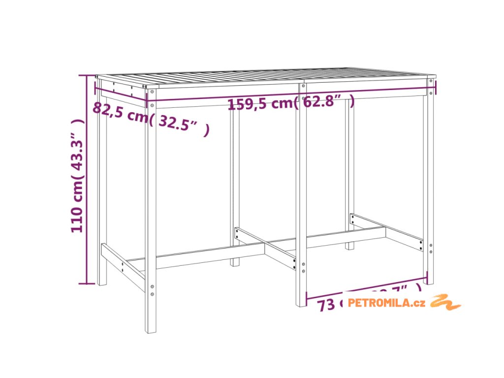 - Rozměry zahradního stolku: 159,5 x 82,5 x 110 cm (D x Š x V)