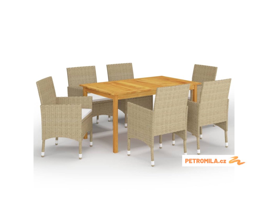 Jídelní stůl je zhotovený z masivního akáciového dřeva s olejovaným povrchem, takže je stabilní, odolný a nenáročný na údržbu. Jídelní židle mají rám z práškově lakované oceli, opletený klimaticky odolným PE ratanem, jsou tudíž odolné a snadno se čistí. Zahradní židle mají zaoblená opěradla a područky, což přispívá k většímu pohodlí, stejně jako jejich ergonomický tvar. Každé křeslo je opatřené odnímatelnou, hustě polstrovanou poduškou, která vám při odpočinku zaručí mimořádný komfort.