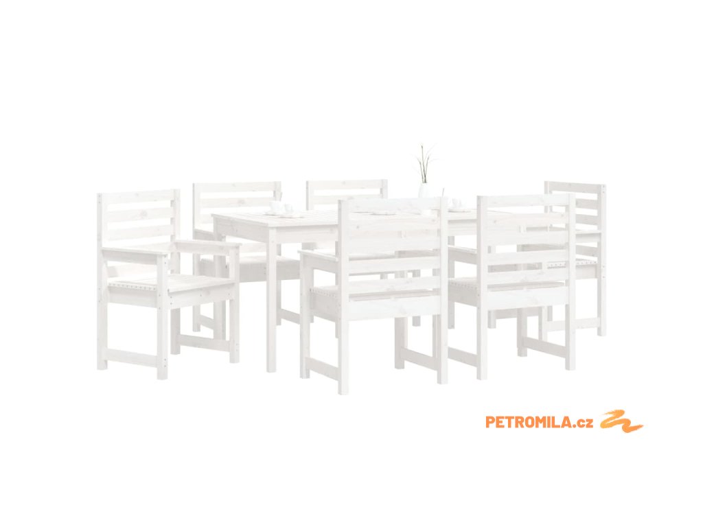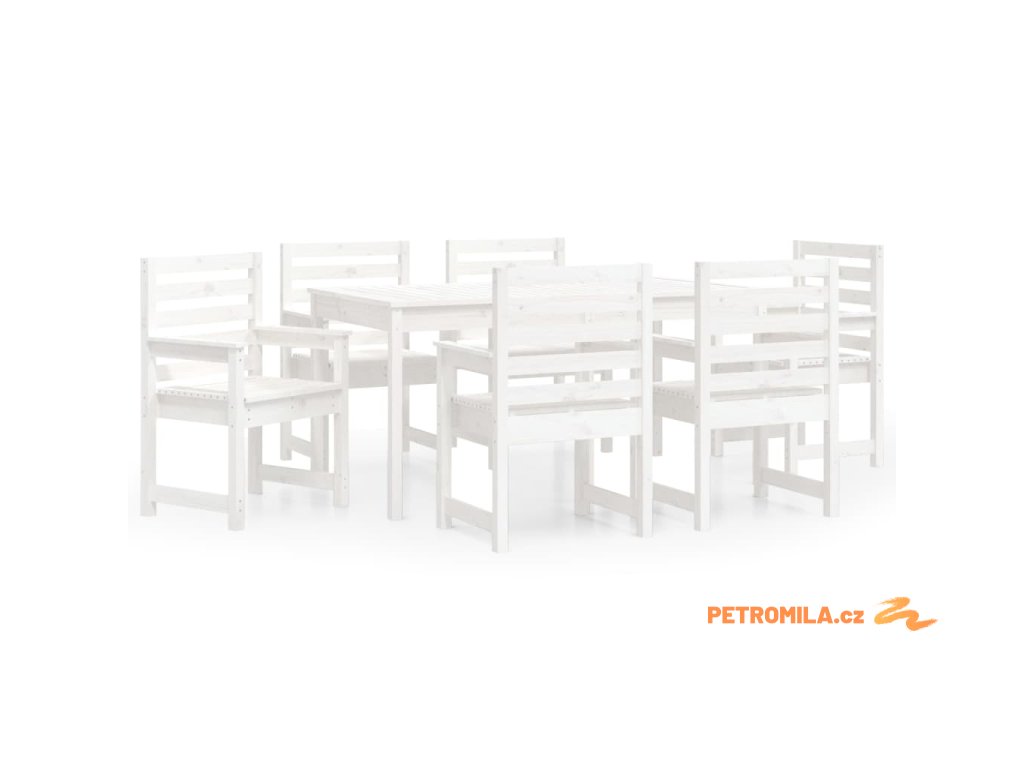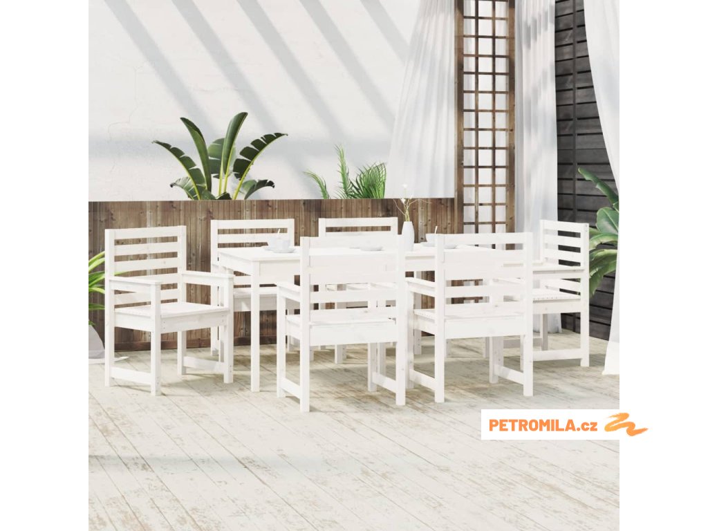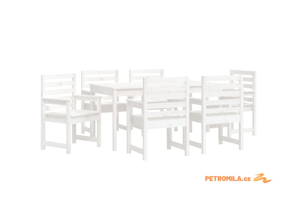 7dílný zahradní jídelní set bílý masivní borové dřevo