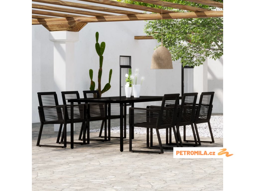 7dílný zahradní jídelní set černý