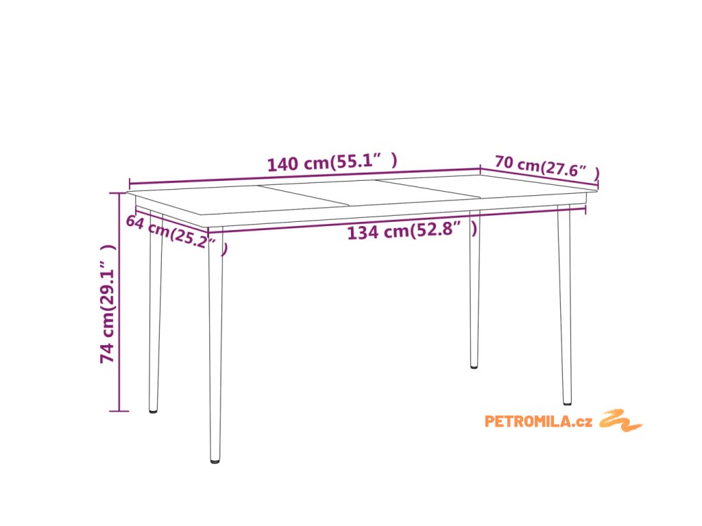 - Rozměry: 140 x 70 x 74 cm (D x Š x V)