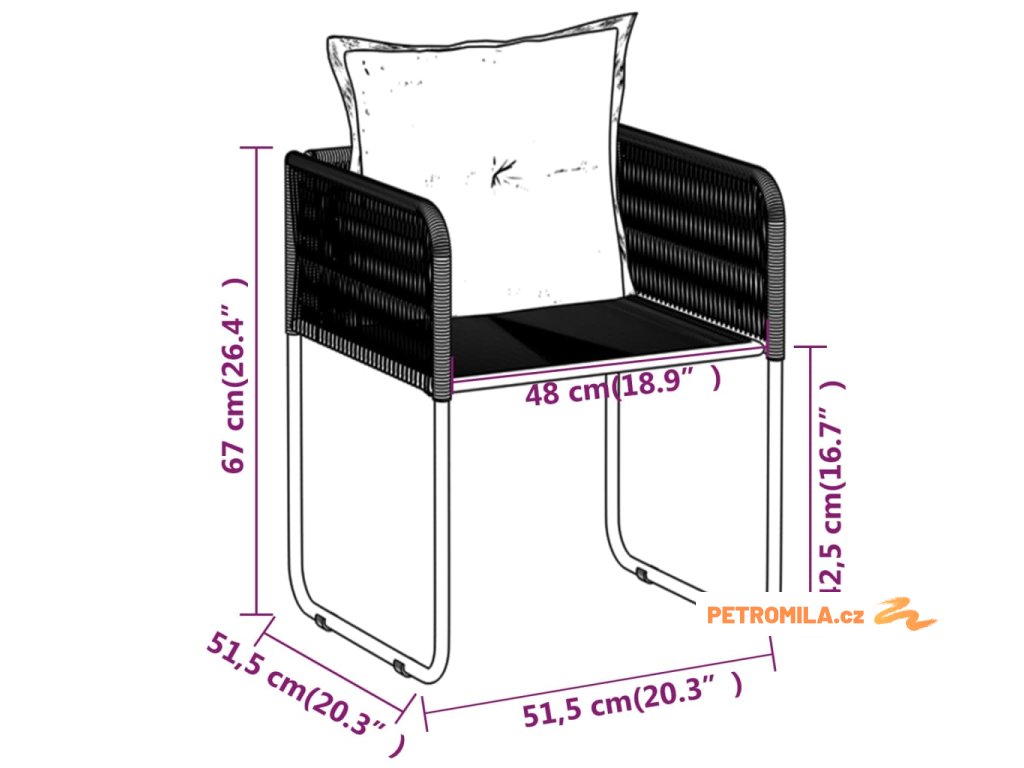 - Rozměry židle: 51,5 x 51,5 x 67 cm (Š x H x V)