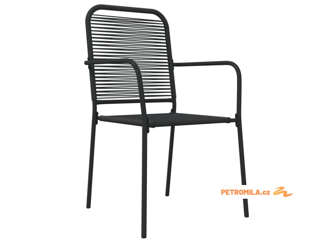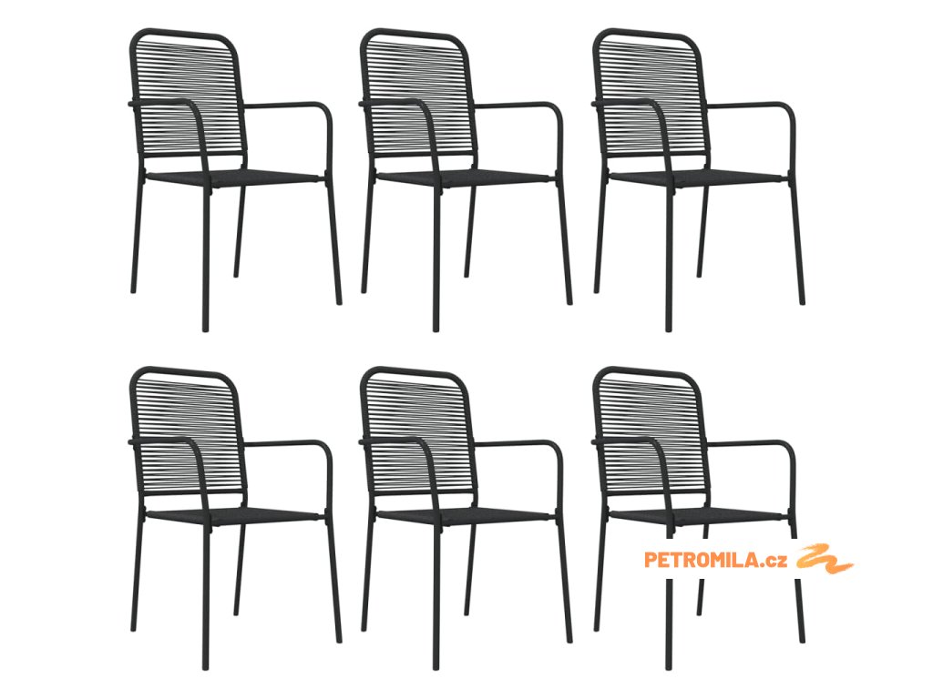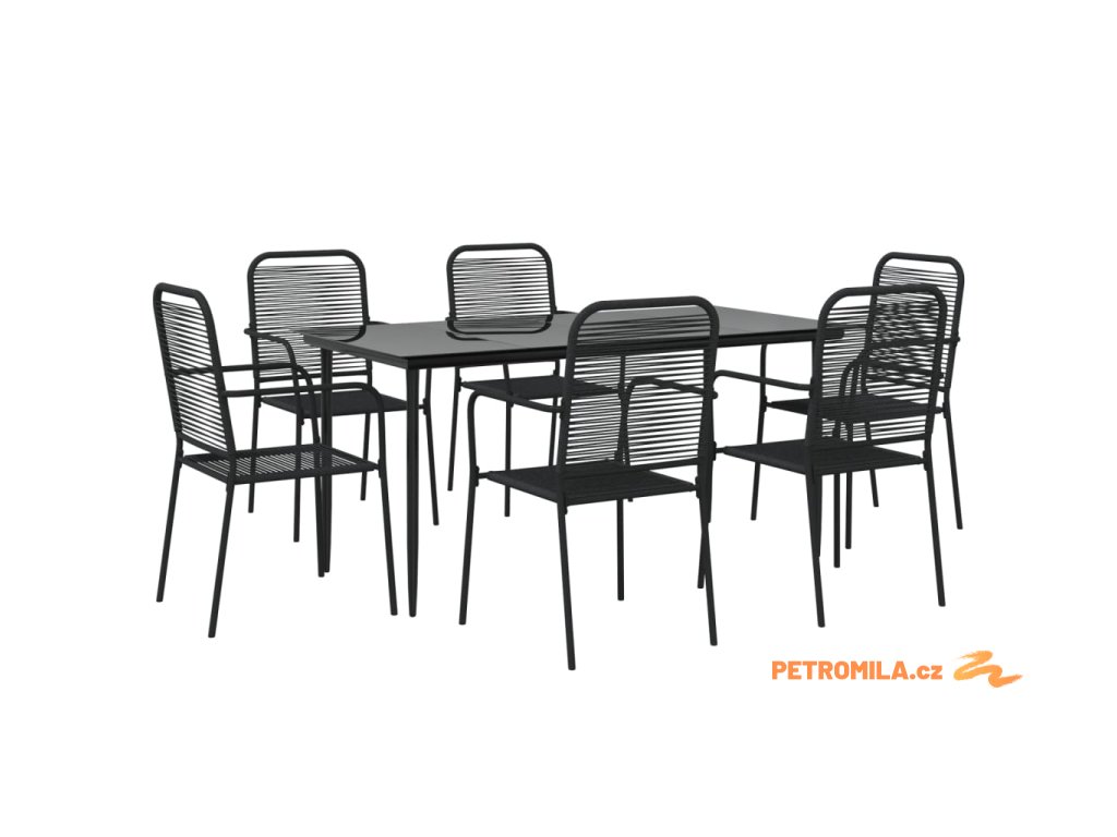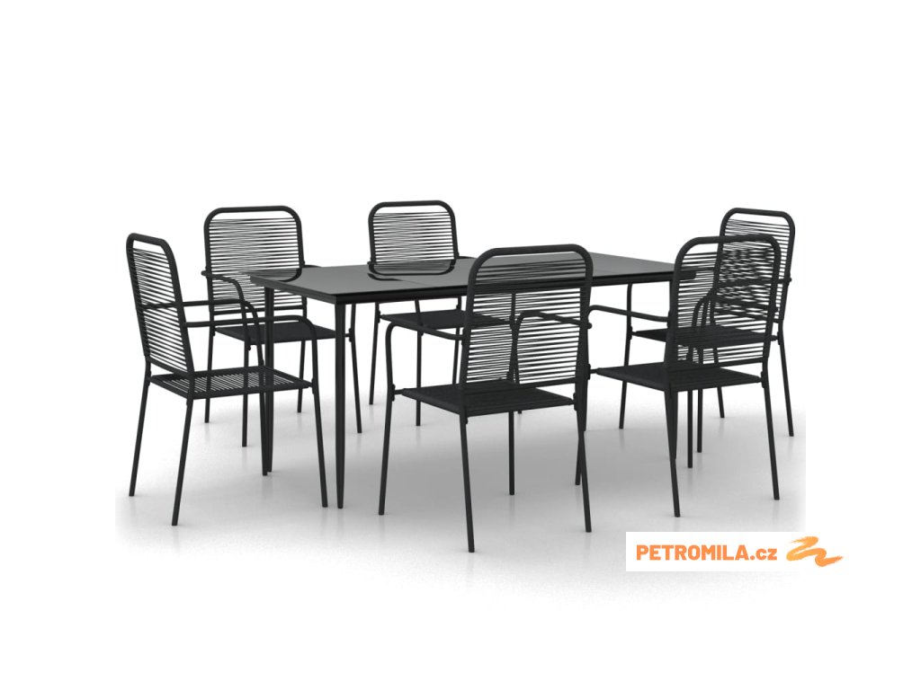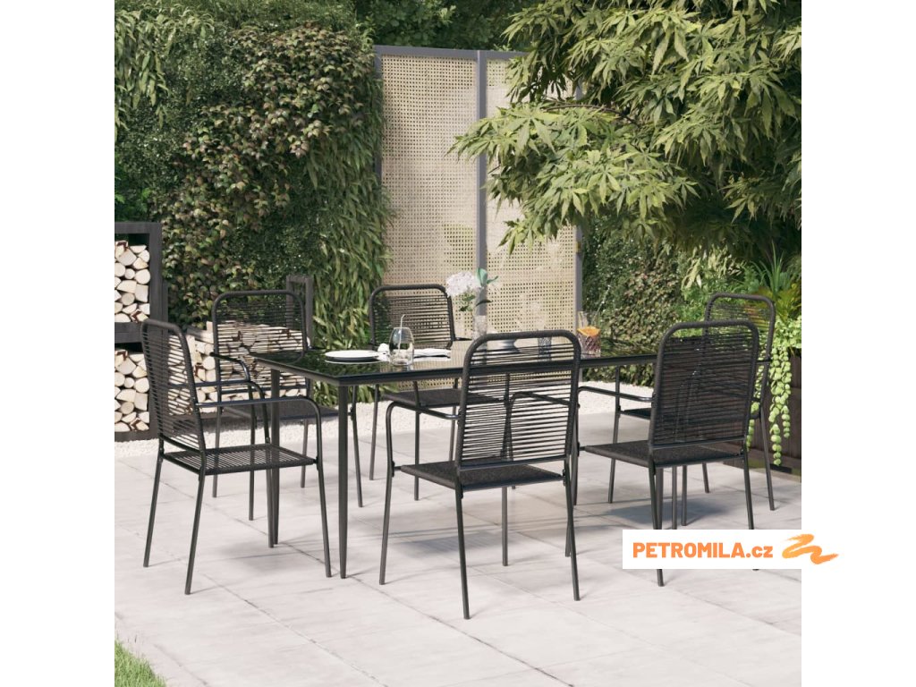 7dílný zahradní jídelní set černý bavlněné lano a ocel