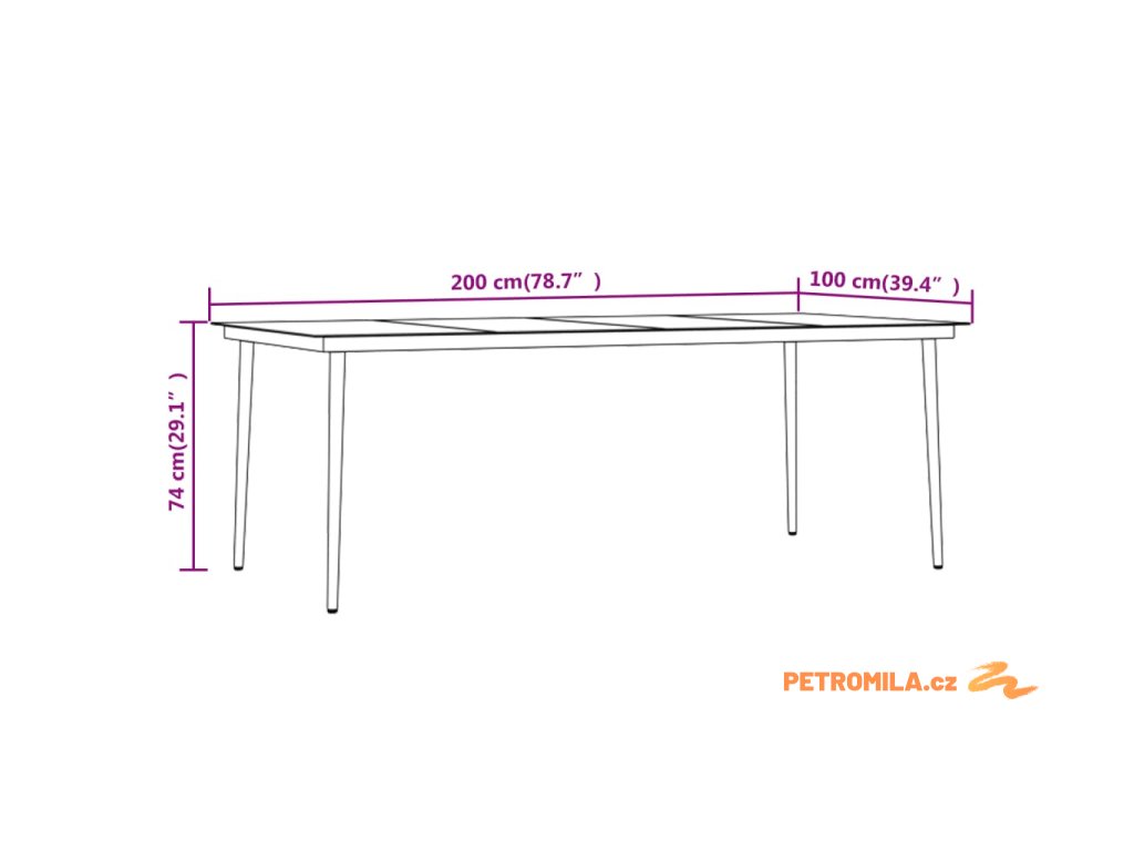 - Rozměry stolu: 200 x 100 x 74 cm (D x Š x V)