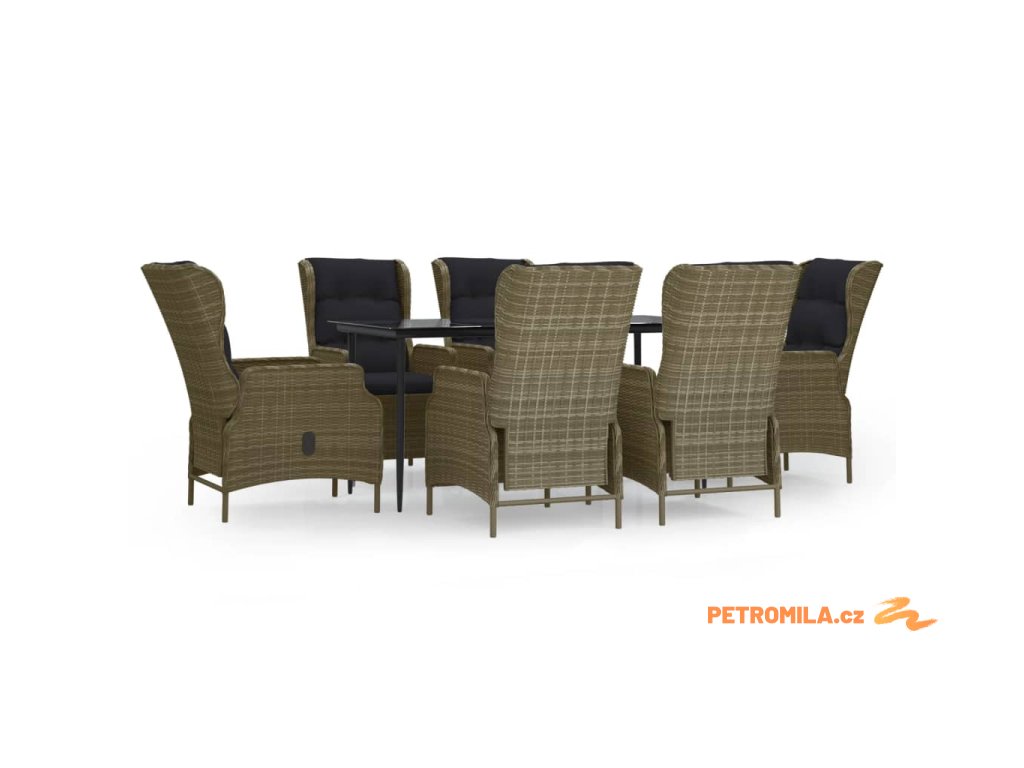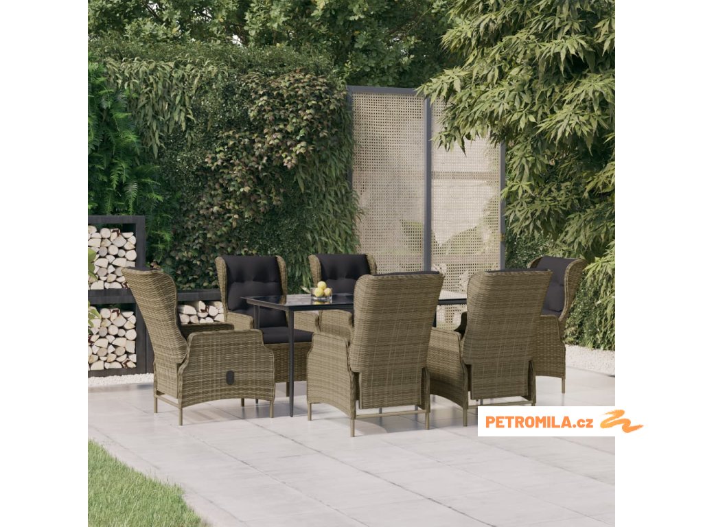 7dílný zahradní jídelní set hnědý polyratan