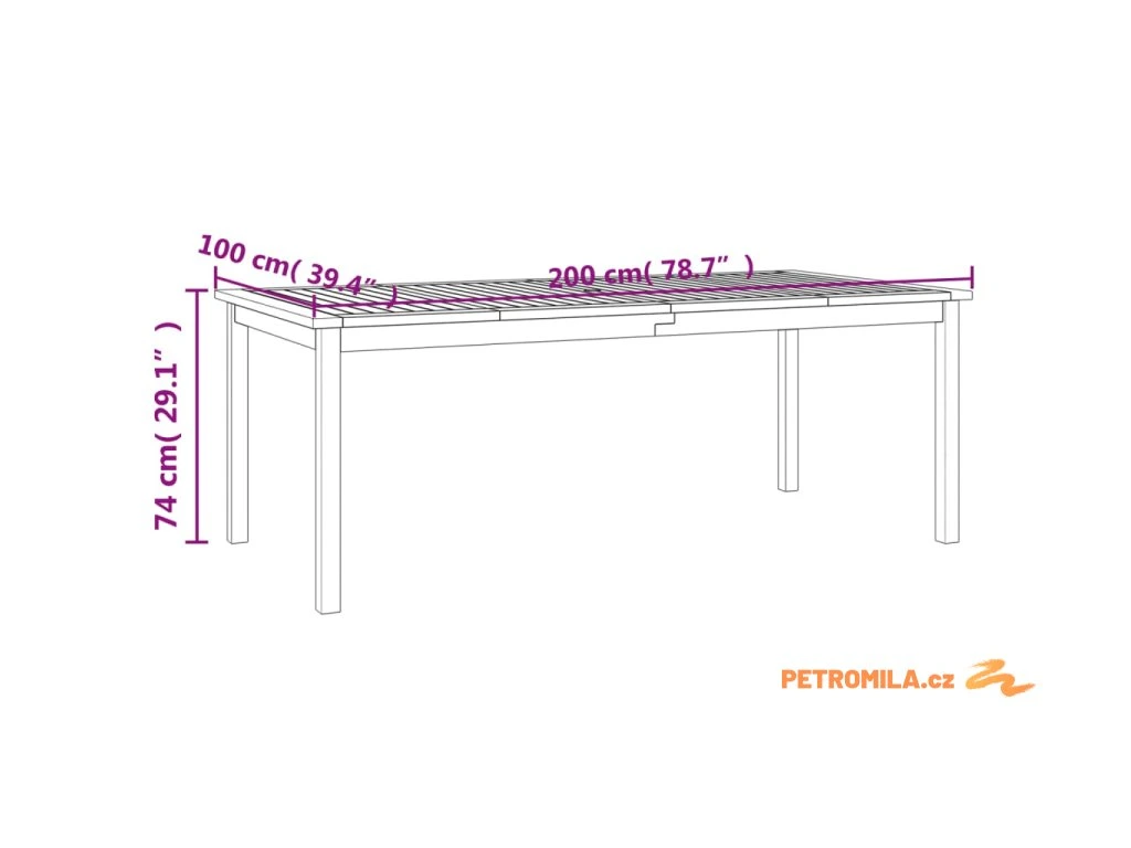 - Rozměry: 200 x 100 x 74 cm (D x Š x V)