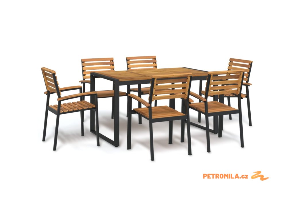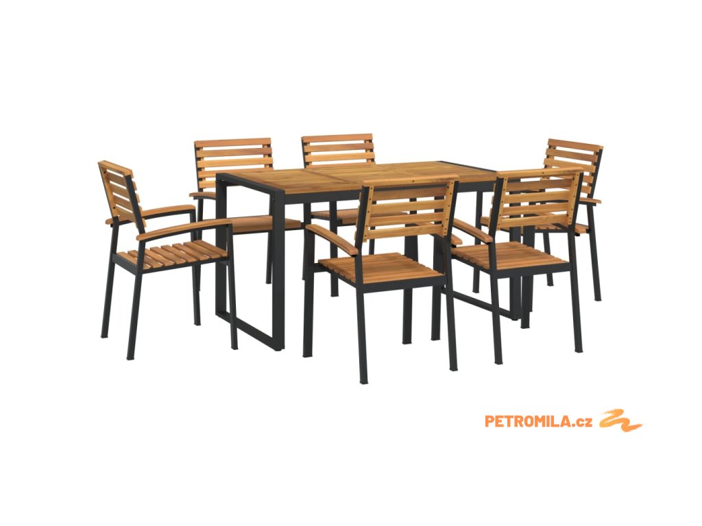 7dílný zahradní jídelní set masivní akáciové dřevo a kov