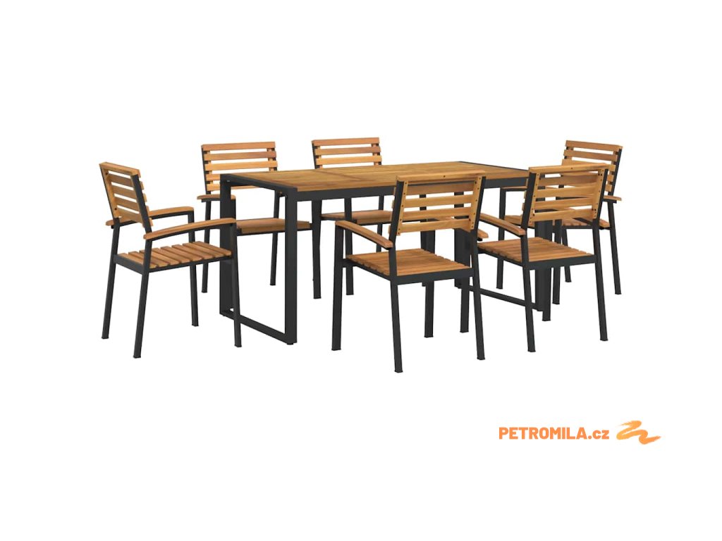 7dílný zahradní jídelní set masivní akáciové dřevo a kov