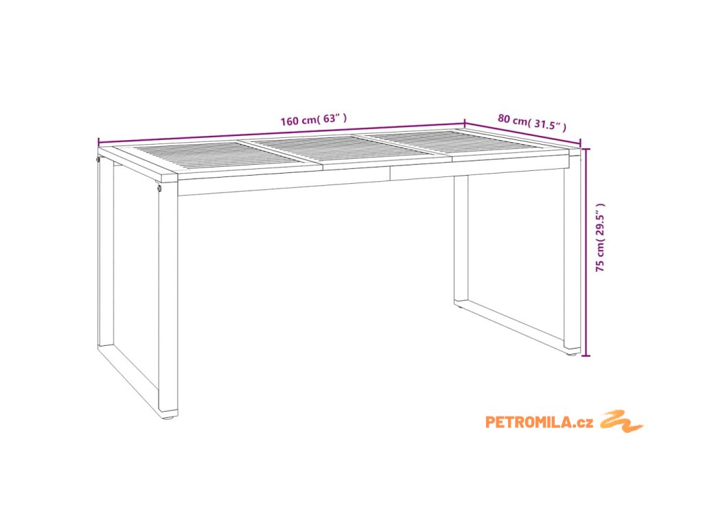 - Rozměry zahradního stolu: 160 x 80 x 75 cm (Š x H x V)