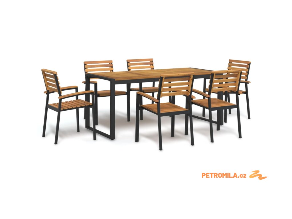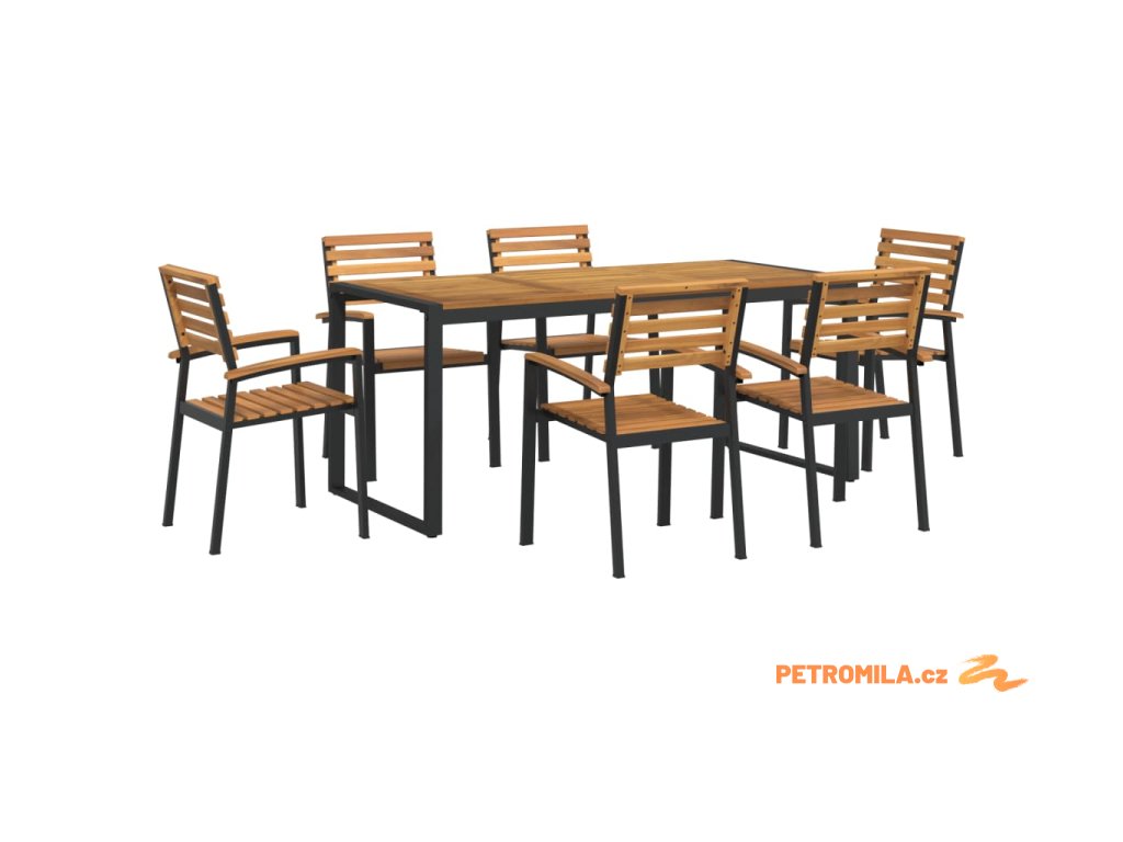 7dílný zahradní jídelní set masivní akáciové dřevo a kov