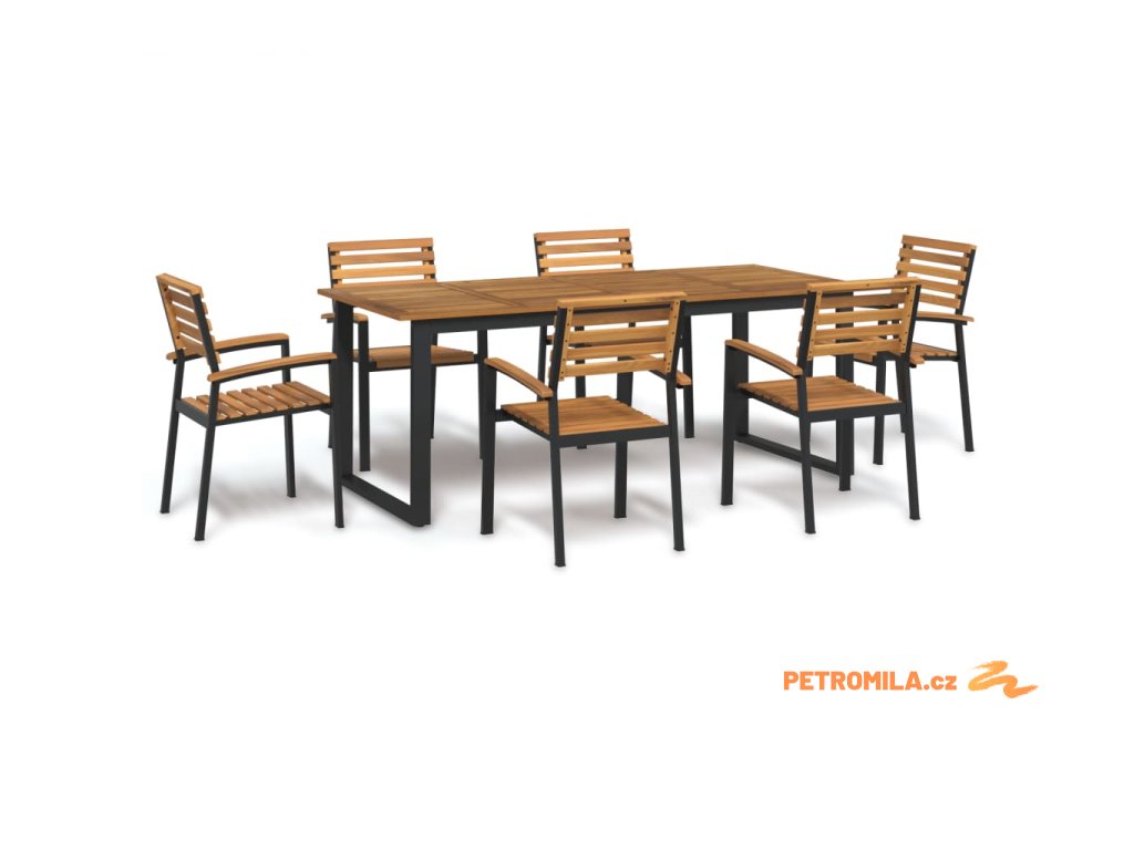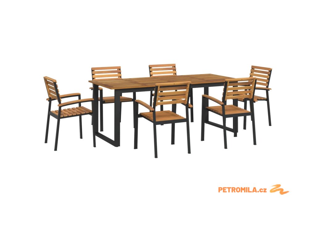 7dílný zahradní jídelní set masivní akáciové dřevo a kov