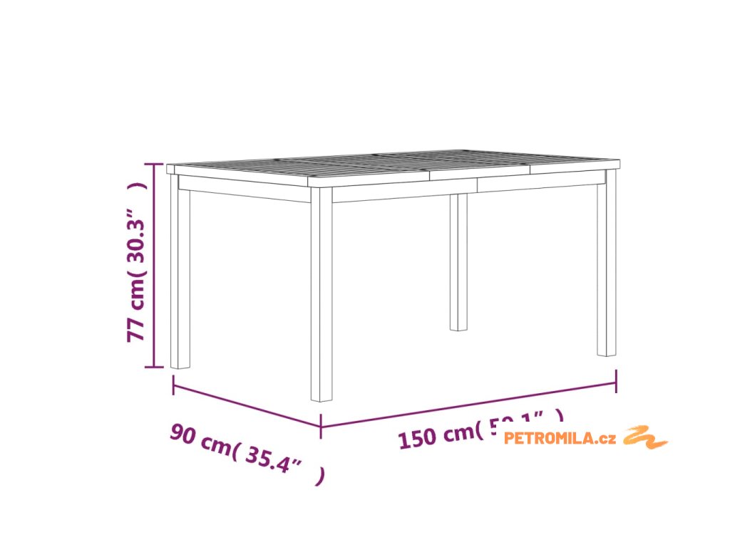 - Rozměry: 150 x 90 x 77 cm (D x Š x V)