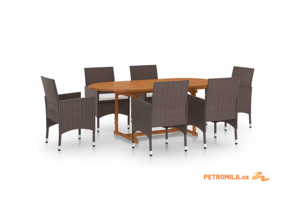 7dílný zahradní jídelní set polyratan hnědý